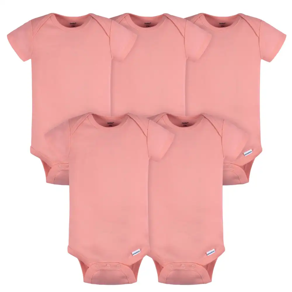 5-Pack Baby Girls Mauve Pink Premium Short Sleeve Lap Shoulder Onesies® Bodysuits