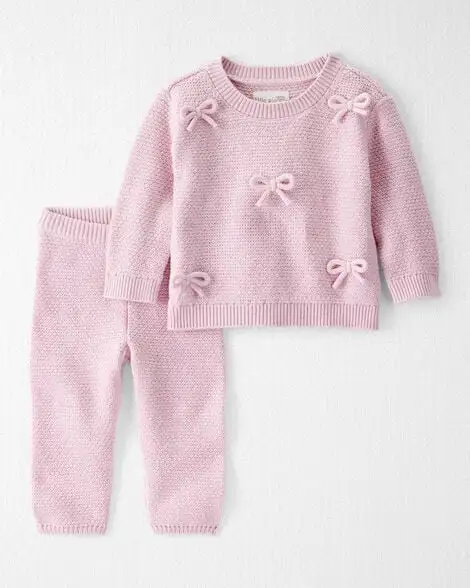 Baby Girl 2-Piece Organic Cotton Bow Sweater Knit Set