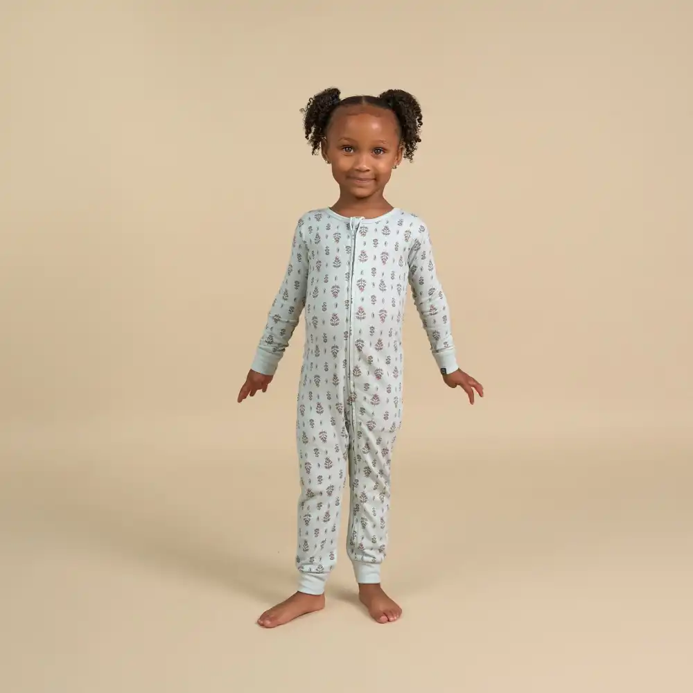 Baby & Toddler Girls Light Green Fleur Hacci Footless Pajamas