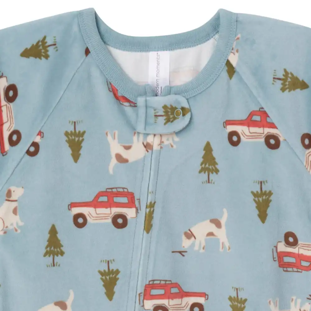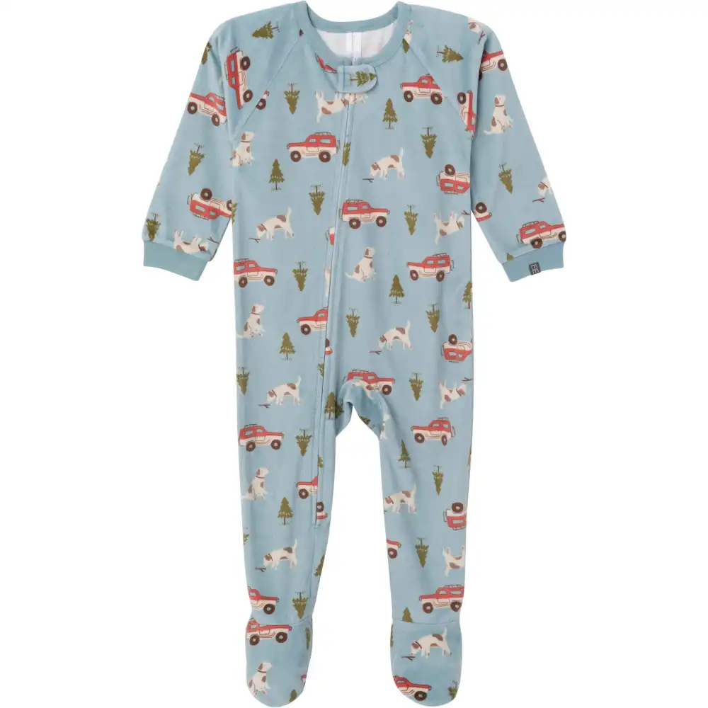 Infant and Toddler Boys Blue Camp Footed Fleece Pajamas