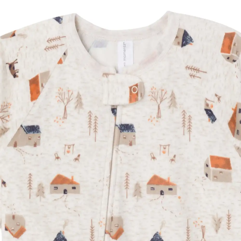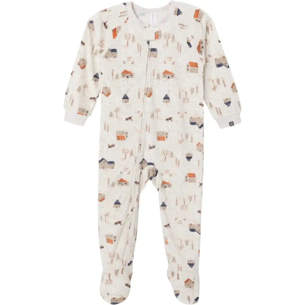 Infant and Toddler Boys Oatmeal Village Footed Fleece Pajamas
