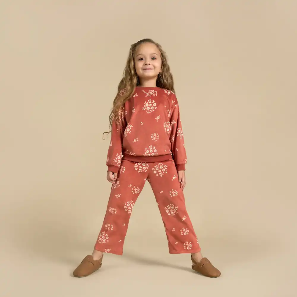 2-Piece Infant & Toddler Girls Red Bouquet Fleece Pajama Set