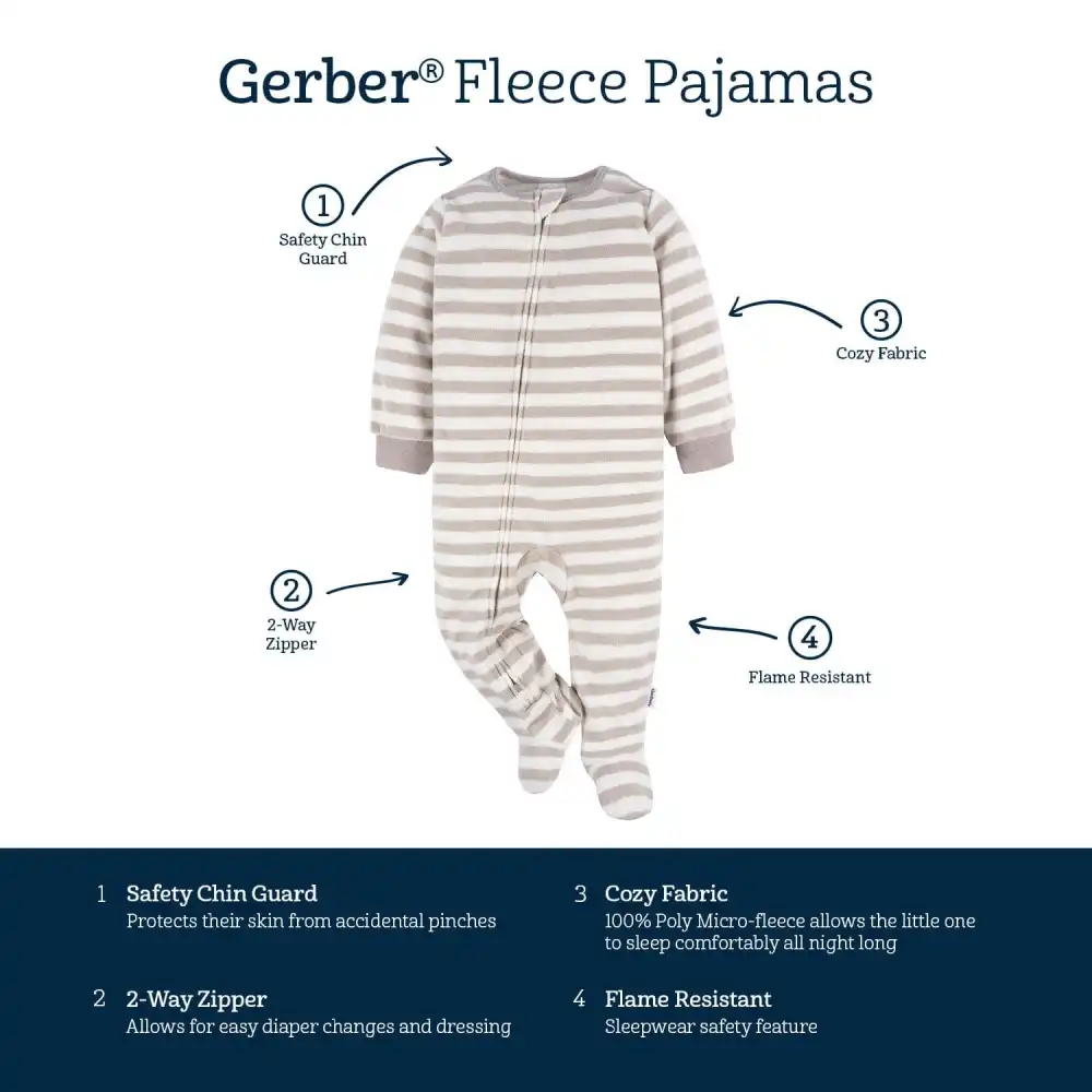 With adorable designs and an ultra-soft microfleece material, this set of two footed fleece pajamas is the perfect way to keep your baby or toddler comfy all night long. Specifically crafted for a cozy feel on cooler nights with adorable designs, these footed pajamas will fast become a bedtime favorite. Our essentials have been independently certified with STANDARD 100 by OEKO-TEX® so that you don’t have to worry about harmful substances in your baby’s wardrobe. Pack includes two fleece pajamas.