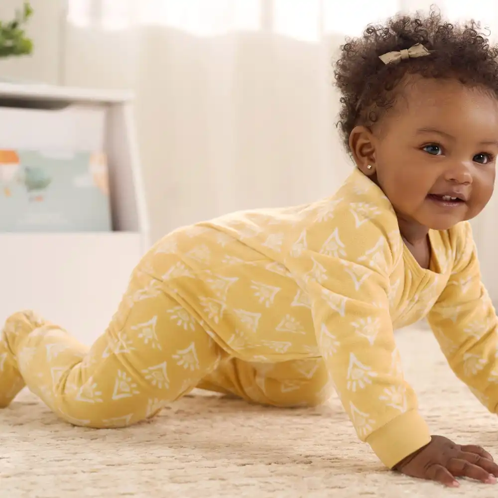 This set of two footed fleece pajamas designed for babies or toddlers are crafted from incredibly soft microfleece. It's the ultimate option for a restful, cozy night's sleep, featuring adorable patterns that your little one will adore. Tailored for cooler climates, these footed pajamas envelop your little one in comforting sleep. Our essentials have been independently certified with STANDARD 100 by OEKO-TEX® so that you don’t have to worry about harmful substances in your baby’s wardrobe. Flame resistant for child safety. Pack includes two fleece pajamas.