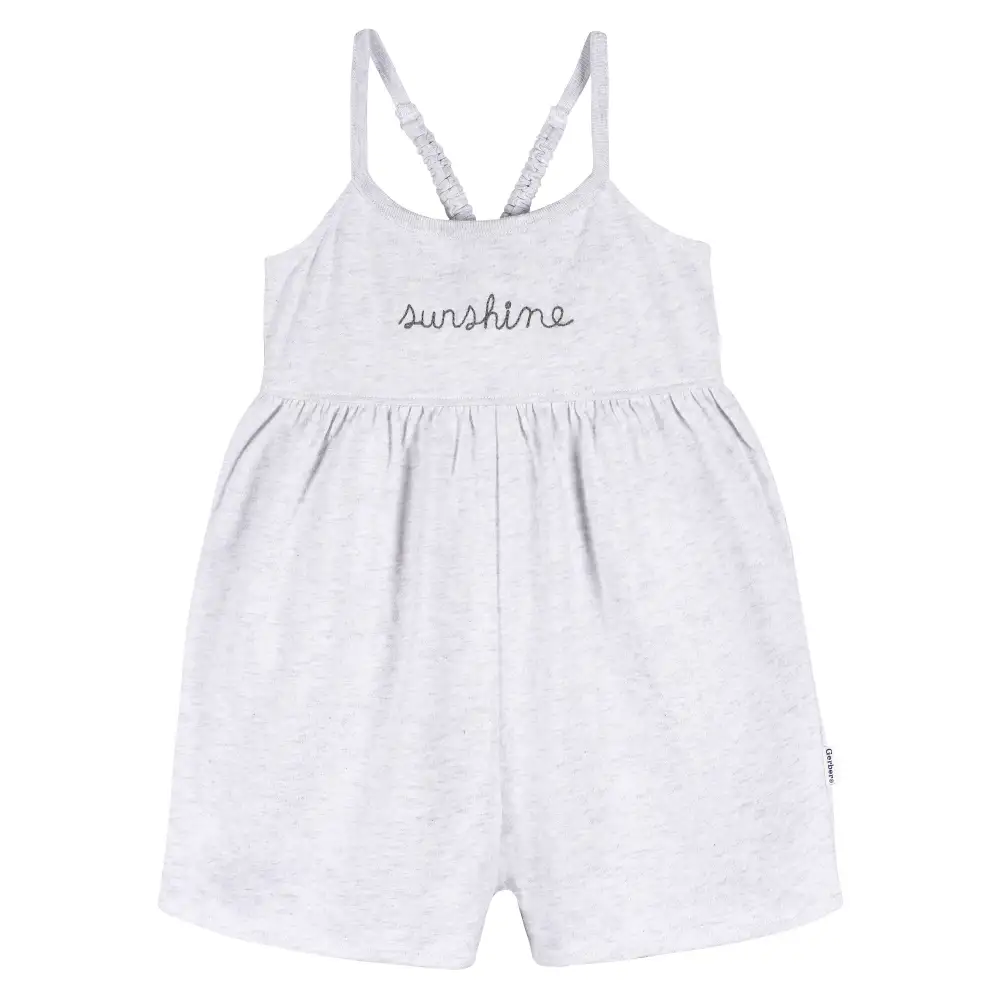 This two pack of sleeveless baby and toddler girl rompers is the perfect way to celebrate the arrival of sunny days! Made from 100% cotton with a slight stretch for a comfortable fit that’s gentle on sensitive skin, you’re little one will be happy to wear this again and again. The simple pull-on style makes dressing easy, and hidden grippers (in infant sizes only) help keep the outfit in place all day long. And with machine cleaning, it’s easy to keep clean for the entire season. Our essentials have been independently certified with STANDARD 100 by OEKO-TEX® so that you don’t have to worry about harmful substances in your little one’s wardrobe. Pack includes two rompers.