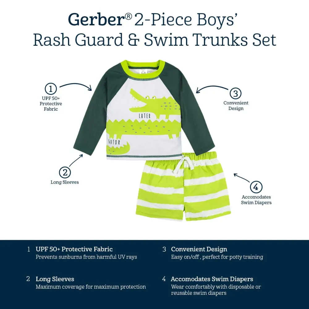 • 2-Piece Baby Boys UPF 50+ Later Gator Rash Guard & Swim Trunks Set