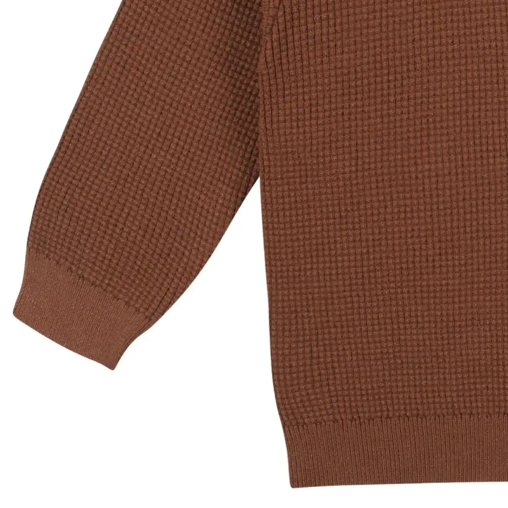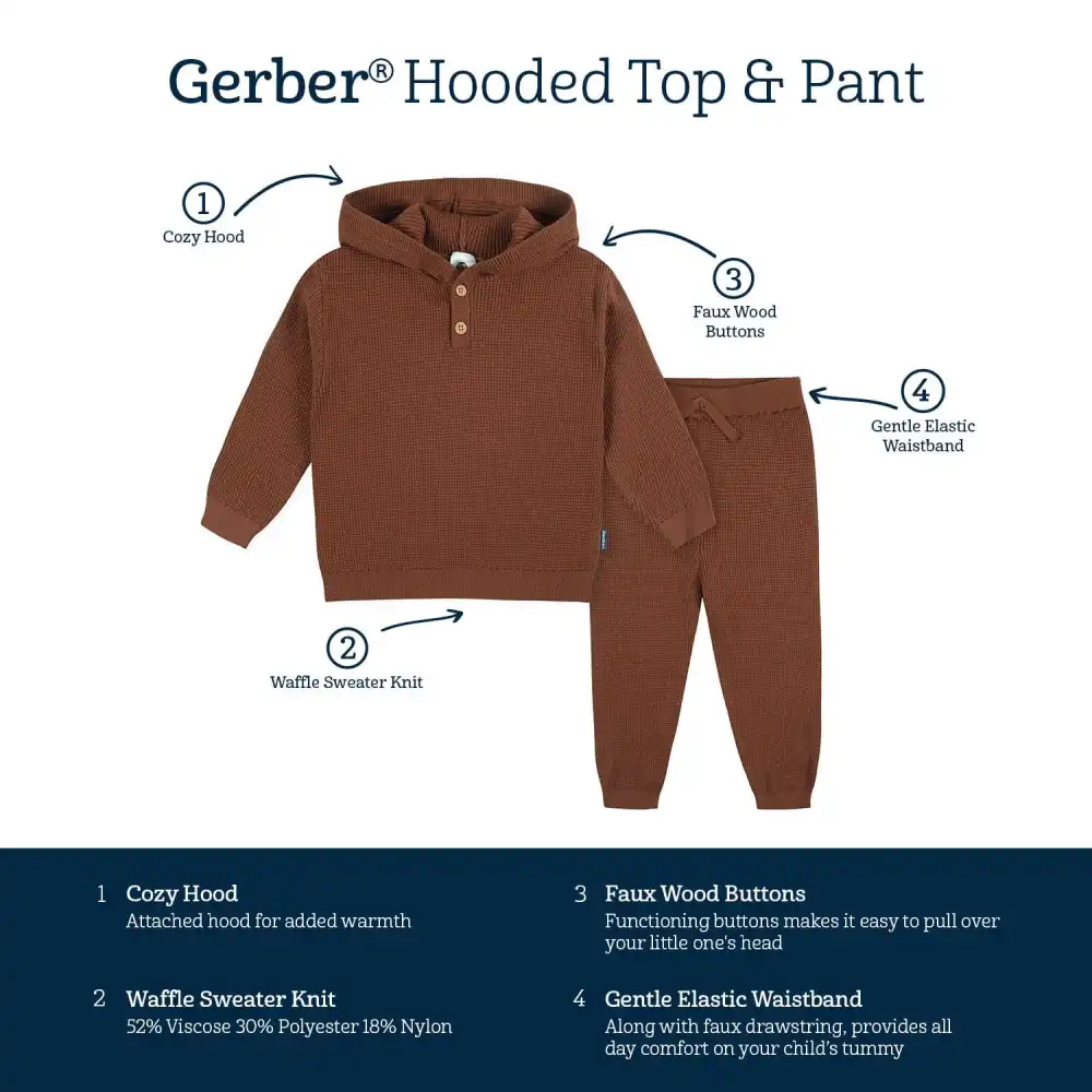 A matching two-piece set, this solid rust sweater knit set is perfect for keeping your infant boy cozy and stylish. Super soft fabric and a cozy hoodie with comfort-stretch at the neck, wrists, waist and ankles makes it an ideal all-day outfit. The pullover top has two buttons, while the pullup pants feature a stretchy waistband for maximum comfort. The easy on-off design and relaxed fit is perfect for toddlers learning to dress themselves. A pair of faux wood buttons and a drawstring add an extra touch of style to the set. Our essentials have been independently certified with STANDARD 100 by OEKO-TEX® so that you don’t have to worry about harmful substances in your infant’s wardrobe. This sweater knit set is easy to care for with machine washing/drying and includes one top and one bottom.