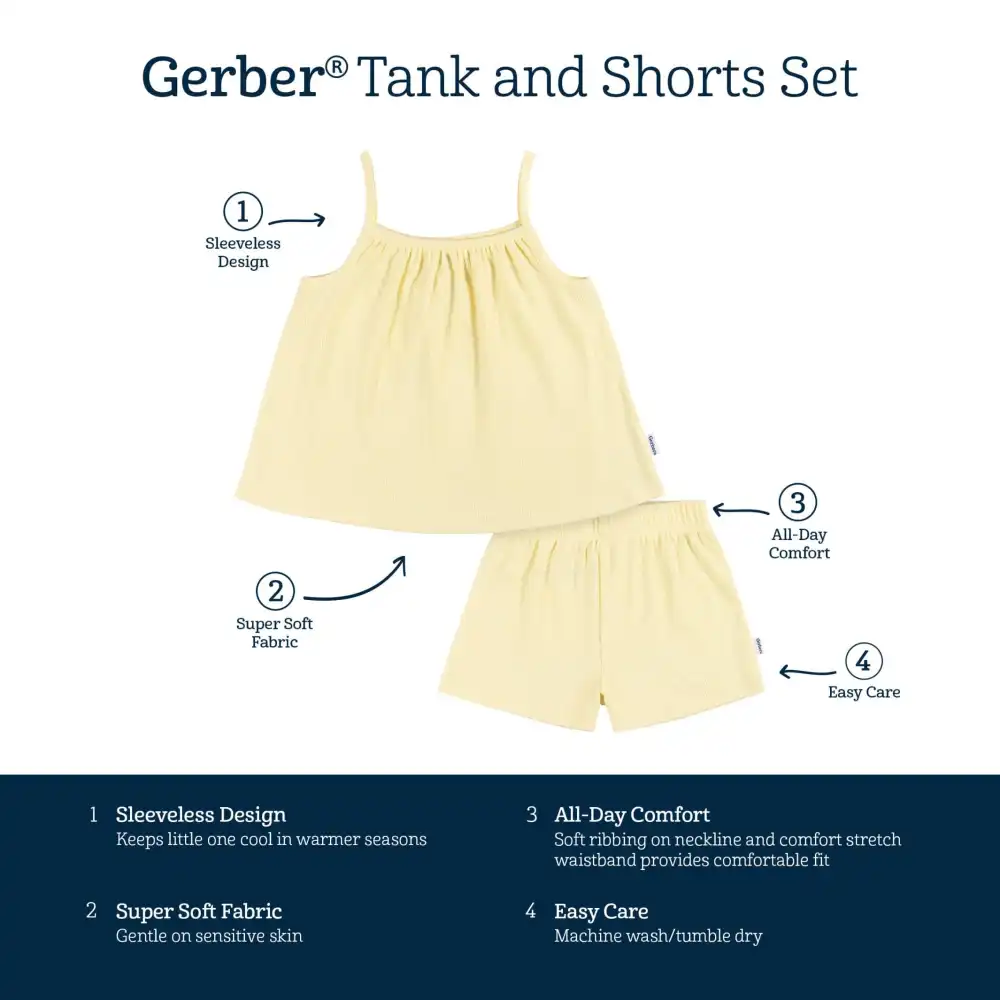 Elevate your little one's warm-weather attire! This toddler girl outfit is a superb option that will last her the entire season. Crafted from a blend of soft, stretchy materials, the matching sleeveless shirt and shorts keep her happy, even on the sunniest days. With the a stretchy waistband on the shorts and the shirt's gentle ribbed neckline, this outfit keeps her comfortable all day long. Our essentials have been independently certified with STANDARD 100 by OEKO-TEX® so that you don’t have to worry about harmful substances in your little one’s wardrobe. Includes shirt and shorts set.