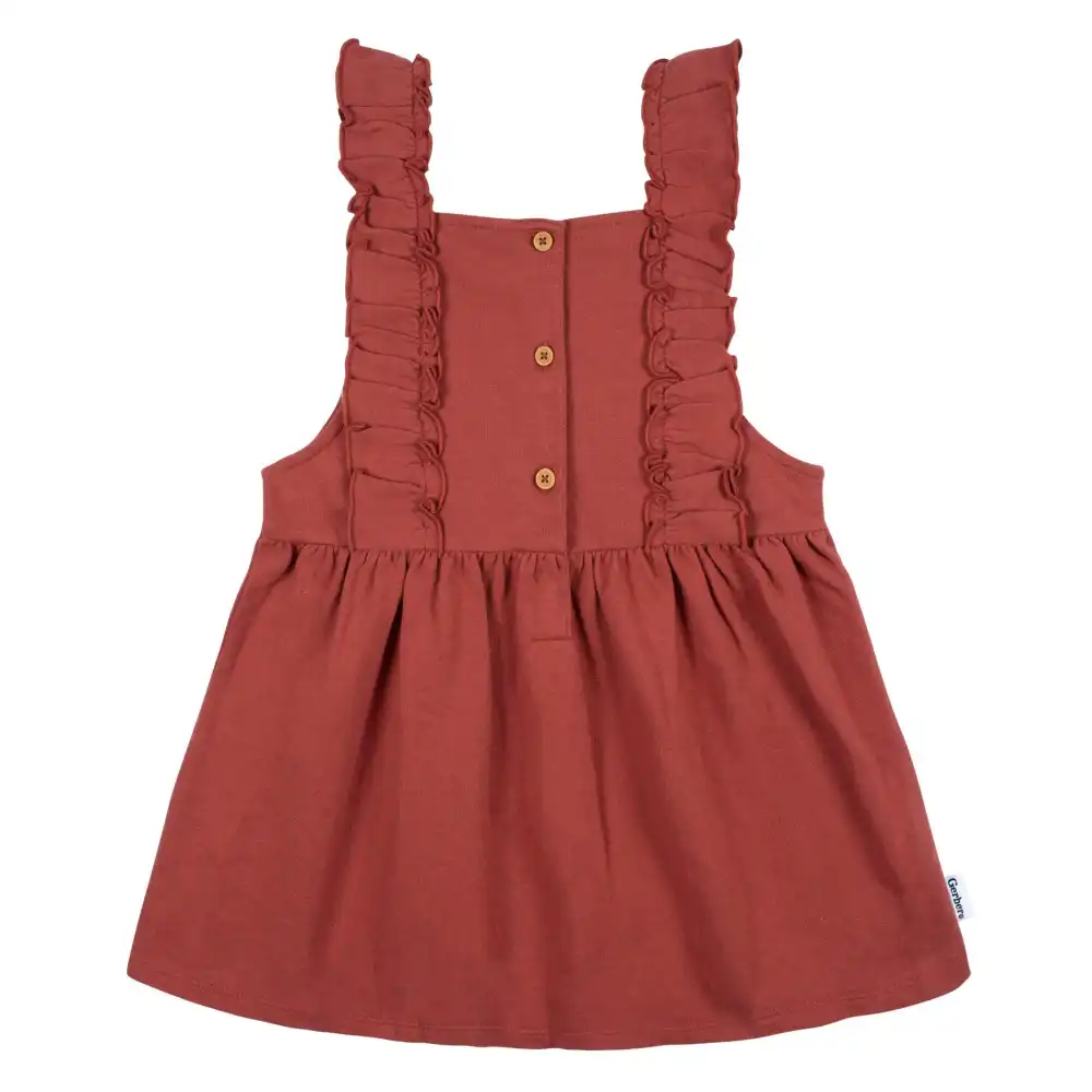 This fall themed, two-piece outfit will keep your baby girl warm and cozy all season long. Features an adorable jumper and matching, long sleeve t-shirt for a complete look. The jumper is made from a warm cotton and polyester blend, while the shirt is made from a slightly stretchy cotton to be gentle on sensitive skin. This picture-perfect outfit is equally great for special occasions or just running daily errands. Our essentials have been independently certified with STANDARD 100 by OEKO-TEX® so that you don’t have to worry about harmful substances in your baby’s wardrobe. This two piece set includes one orange jumper and one long sleeve shirt with matching falling leaves pattern.