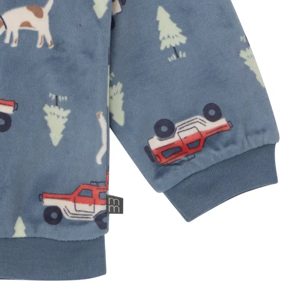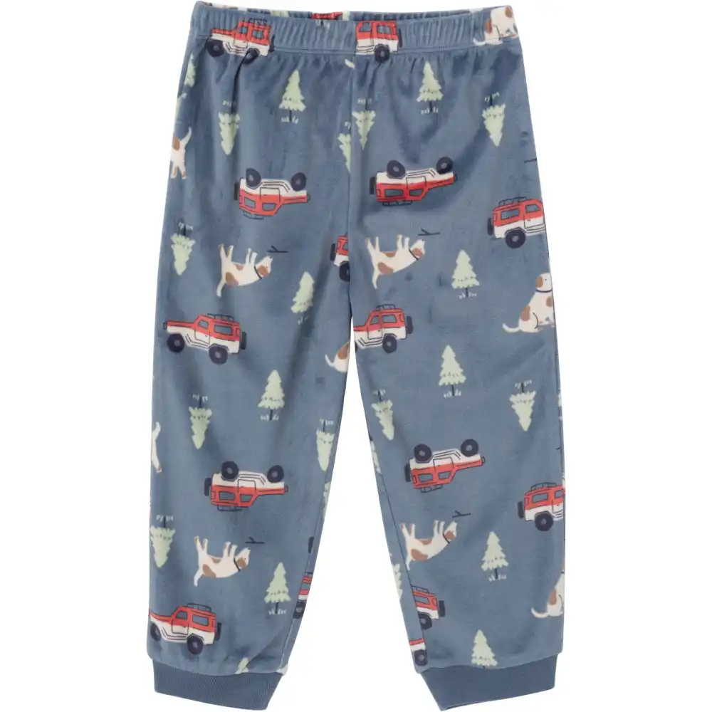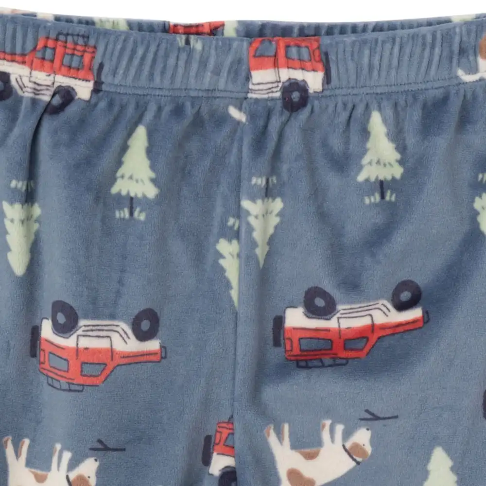 Get your little one cozy for bedtime with our adorable baby boy or toddler boy top and pants pajama set! Crafted from very soft bunny fleece, these pajamas offer all-night comfort for your precious bundle. With comfort stretch rib detailing on the pants' waistband and shirt hem, as well as at the neckline and wrists, these pajamas ensure a cozy fit for pleasant dreams. Perfect for cooler nights, this set provides a warm feel and is flame-resistant for your peace of mind. Our essentials have been independently certified with STANDARD 100 by OEKO-TEX® so that you don’t have to worry about harmful substances in your little one’s wardrobe. Pack includes matching pajamas top and bottom.