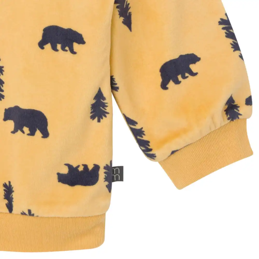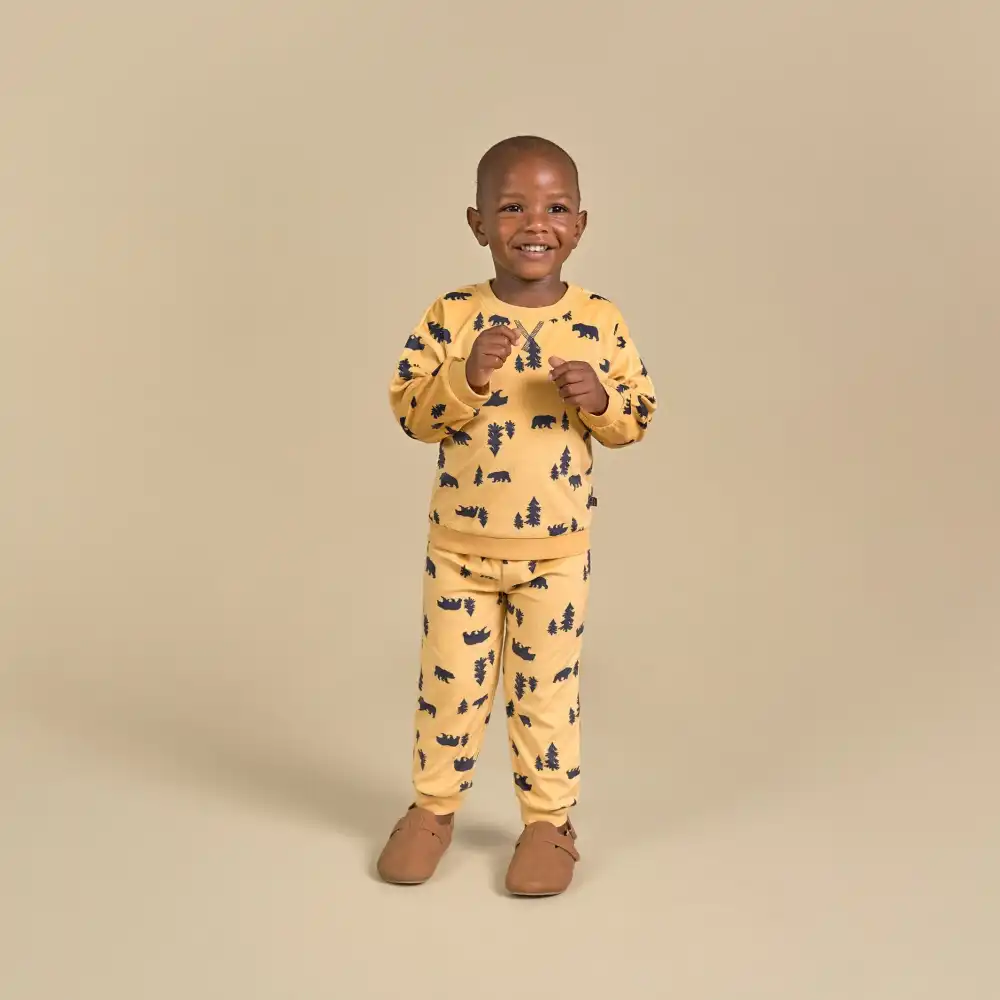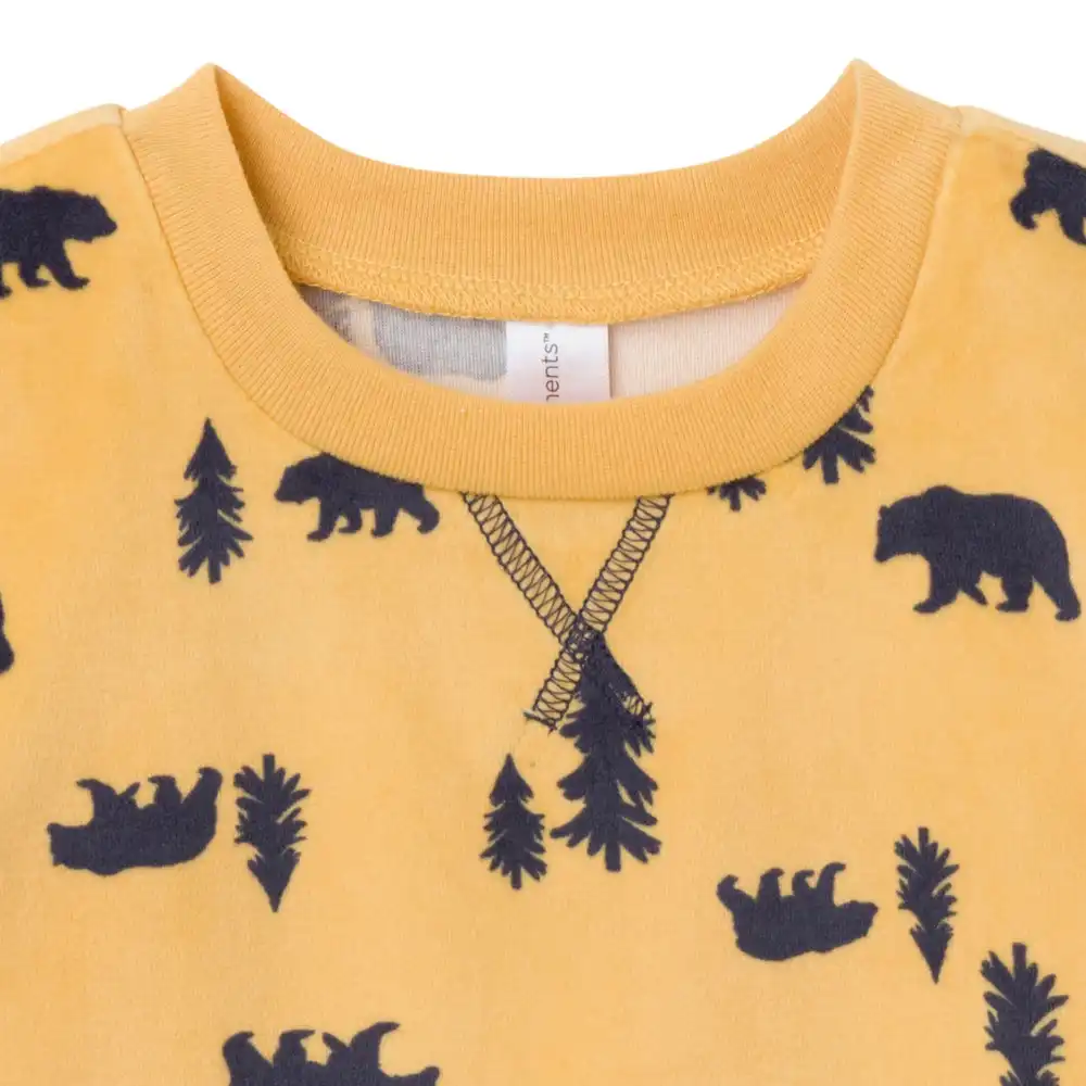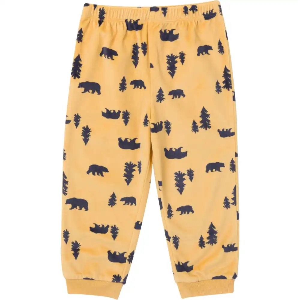 Our baby boy top and pants pajama set is crafted from very soft bunny fleece for your little one’s comfort. Featuring comfort-stretch rib detailing on the pants' waistband and shirt hem, as well as at the neckline and wrists, these pajamas offer a cozy yet flexible fit. Designed for cooler nights, these pajamas offer a cuddly feel while prioritizing safety with their flame-resistant material. Our essentials have been independently certified with STANDARD 100 by OEKO-TEX® so that you don’t have to worry about harmful substances in your little one’s wardrobe. Pack includes matching pajamas top and bottom.
