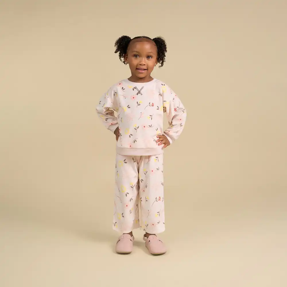 Our baby girl or toddler girl top and pants pajama set is crafted from very soft bunny fleece, making it a dream to wear. With comfort-stretch rib detailing on the pants' waistband and shirt hem, as well as at the neckline and wrists, they provide a snug yet flexible fit. Perfect for cooler nights, these pajamas are also flame-resistant, prioritizing your little one's safety while they sleep. Our essentials have been independently certified with STANDARD 100 by OEKO-TEX® so that you don’t have to worry about harmful substances in your little one’s wardrobe. Pack includes matching pajamas top and bottom.