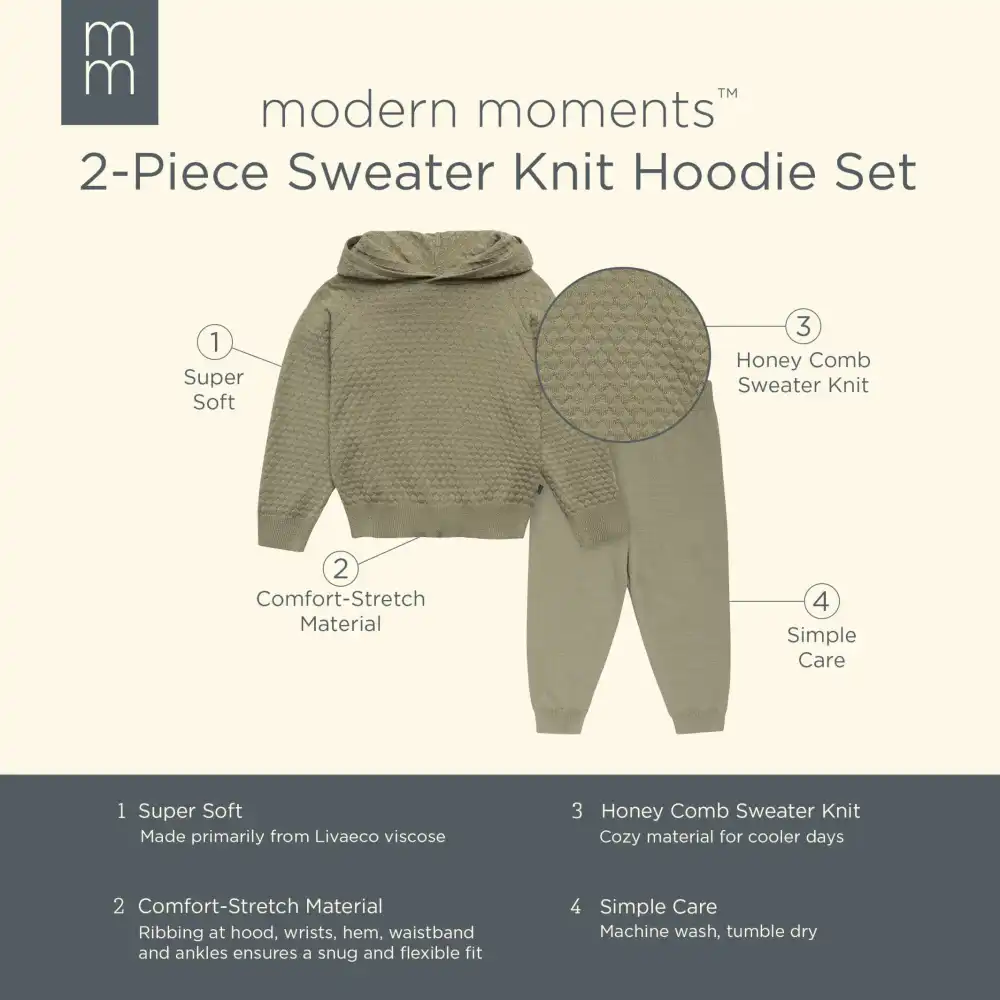 Our charming baby or toddler girl sweater knit hoodie set, made from super soft viscose, is designed with strategic comfort-stretch, ensuring a flexible and cozy fit for your little one. Ideal for fall or winter days, the easy-to-layer hoodie makes dressing simple, while the cozy design provides extra warmth on cooler days. Perfect for playdates or outings with family and friends, this set is a must-have addition to your child's wardrobe. Our essentials have been independently certified with STANDARD 100 by OEKO-TEX® so that you don’t have to worry about harmful substances in your little one’s wardrobe. Pack includes one hoodie with matching pants.