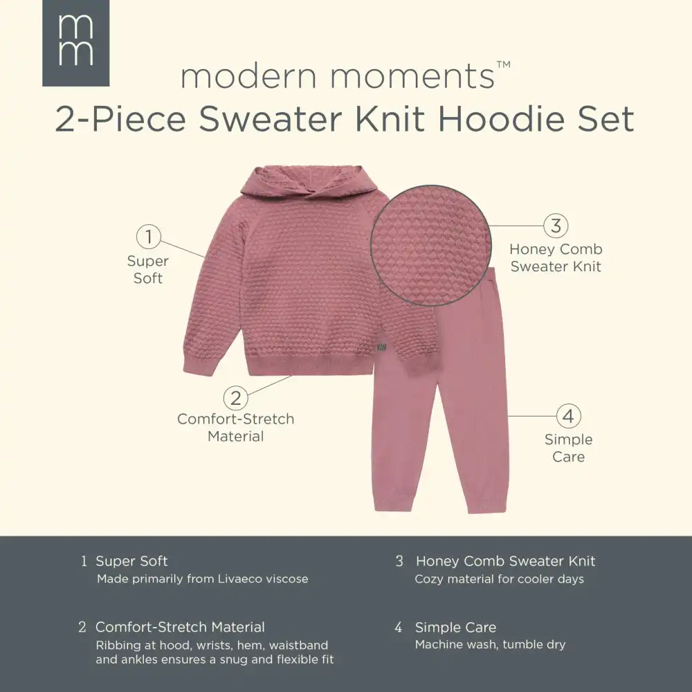 Dress your little girl in style and comfort with our adorable baby or toddler girl sweater knit hoodie set, made from super soft viscose. This set features strategically placed comfort-stretch material, ensuring a flexible and cozy fit for your child. Perfect for fall or winter days, the easy-to-layer hoodie allows for effortless dressing, while the cozy design provides extra warmth on cooler days. Whether it's a day at daycare or a weekend adventure, this set is sure to keep your little one happy and comfortable. Our essentials have been independently certified with STANDARD 100 by OEKO-TEX® so that you don’t have to worry about harmful substances in your little one’s wardrobe. Pack includes one hoodie with matching pants.