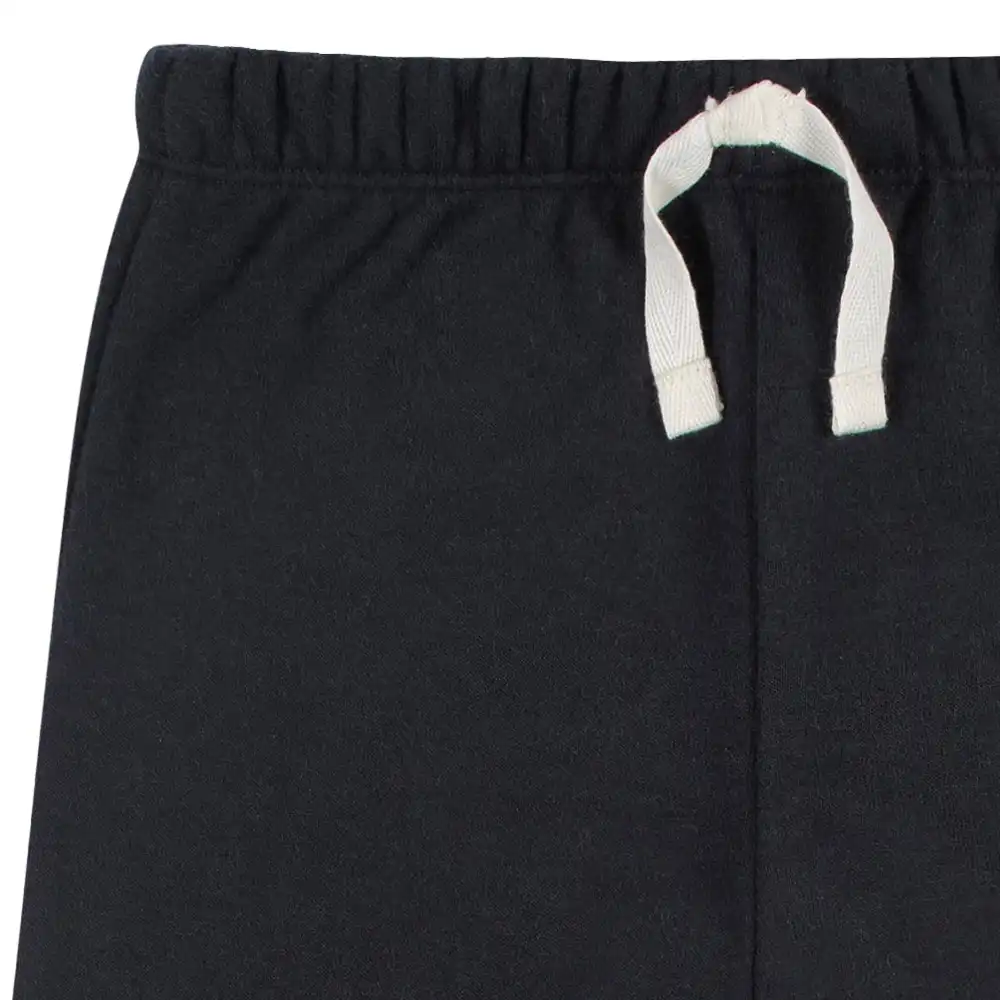 This two-piece fleece set is the perfect cool weather outfit for your baby boy or toddler boy. Made from a cozy fabric blend designed to keep your little one comfy, it’s easy to add layers as needed. With a simple, solid black style, this top and bottom is the perfect choice for almost any occasion and saves you time and hassle finding matching pieces. An easy pullover top helps as your little one learns to dress himself, while the pullup pants fit simply and comfortable with a stretchy waistline. The faux drawstring adds a nice finishing touch. The entire outfit is easy to care for with machine wash/dry. A stylish and practical choice for your little one, this outfit is available in baby boy clothes sizes and toddler boy clothes sizes.