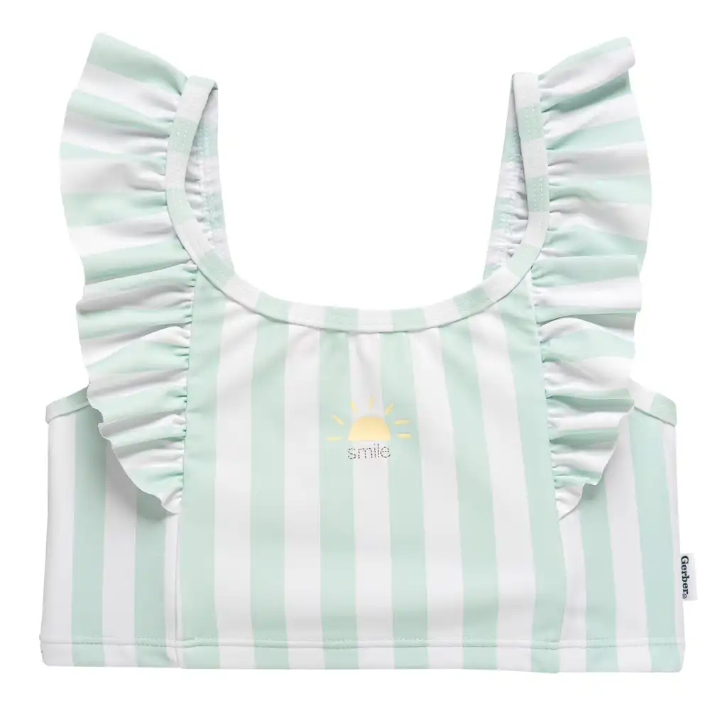 Get ready to make a splash at the beach or pool with this charming toddler girl's swimsuit ensemble! With its timeless stripes and delightful shoulder and leg ruffles, your little one is sure to be enchanted by this swimsuit. This classic look swimsuit features UPF 50+ protective fabric to shield against harmful sun rays. It's the perfect blend of timeless fashion and practical sun protection for your little one! Our essentials have been independently certified with STANDARD 100 by OEKO-TEX® so that you don’t have to worry about harmful substances in your baby’s wardrobe. This pack includes two-piece swimsuit set.