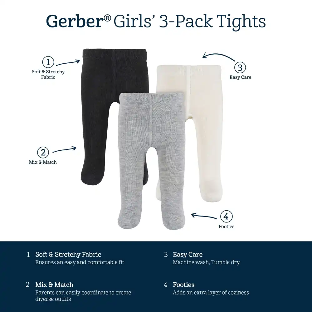 Our three pack of tights provide a comfortable fit for your little girl. With a variety of colors included, you can easily mix and match to create adorable outfits for your little one. Made from a soft and stretchy fabric blend with extra flexibility at the waistband, these tights offer a comfortable fit. Our essentials have been independently certified with STANDARD 100 by OEKO-TEX® so that you don’t have to worry about harmful substances in your little one’s wardrobe. Pack includes three pairs of tights.
