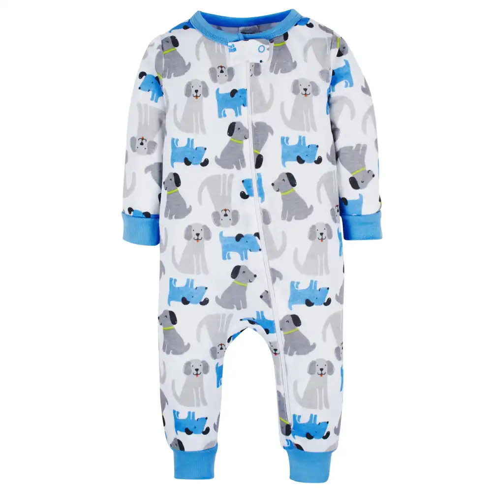 Make bedtime fun with these stripes and doggies themed PJs! Our snug fit one-piece cotton pajamas are soft and safe, perfect for sleeping or lounging! We use STANDARD 100 by OEKO-TEX® certification on products tested in an independent laboratory against a list of more than 400 harmful substances, including PFAS.