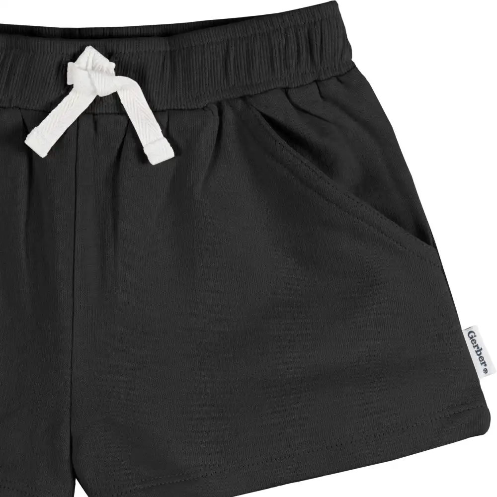Keep your little baby girl or toddler girl comfortable all day in these shorts designed for warm weather. Crafted primarily from soft, breathable cotton with spandex added at the waistline for a comfortable stretch, these shorts offer all-day comfort. Whether you're off to play dates or running errands, our girl shorts are the perfect companion. And when it's time for a refresh after your day's activities, simply pop them in the washing machine and dryer so they're prepped for your next big day. Our essentials have been independently certified with STANDARD 100 by OEKO-TEX® so that you don’t have to worry about harmful substances in your baby’s wardrobe. Pack includes three shorts.