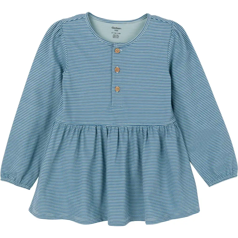 Elevate her wardrobe with this three piece toddler girl outfit set featuring two tunics with coordinating leggings. This delightful set provides versatility and easy mix-and-match possibilities. Crafted primarily from soft cotton, each piece is designed to keep her comfy and happy, even on cooler days. Comfort-stretch material at the waistline, neck, and sleeves ensures a cozy fit all day long, easy as she moves and plays. Whether she's exploring the playground or enjoying a cozy day at home, this versatile set will be the perfect fit. Our essentials have been independently certified with STANDARD 100 by OEKO-TEX® so that you don’t have to worry about harmful substances in your baby’s wardrobe. This pack includes two tunics and one pair of leggings.