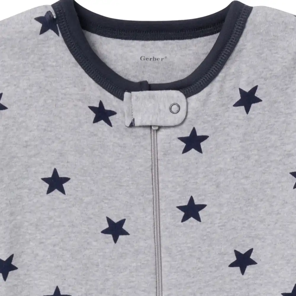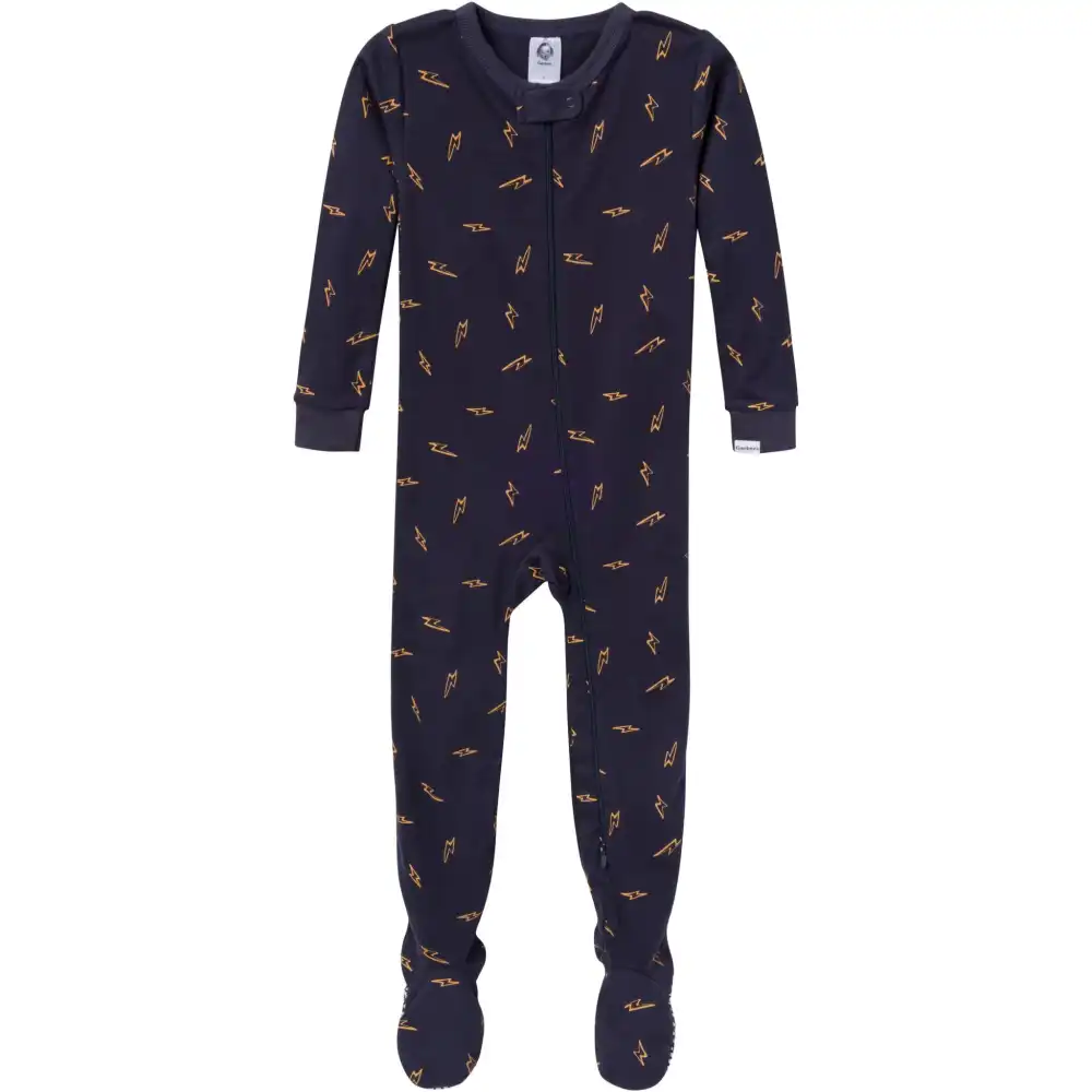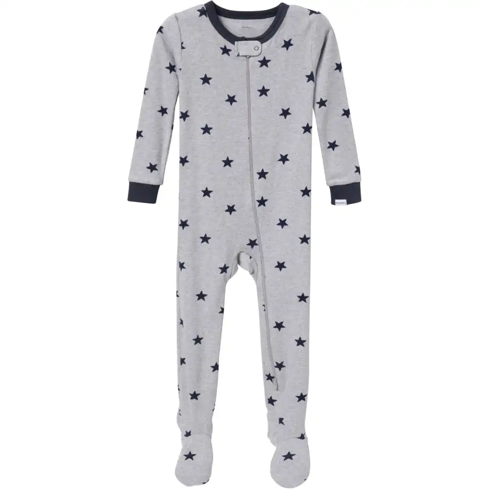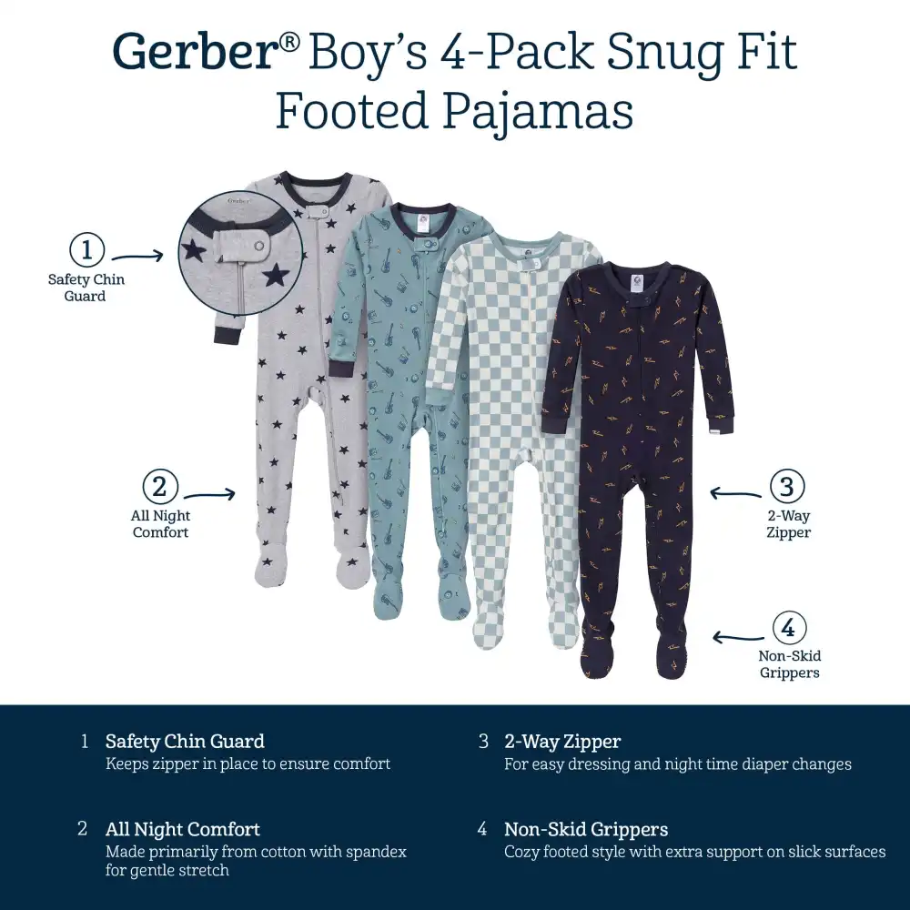 Prepare your little one for colder nights with this 4-pack of baby boy or toddler boy pajamas, designed for comfort and warmth. Made primarily from soft cotton, these pajamas offer a breathable feel that keeps him cozy without overheating. The two-way zipper with a neckline guard ensures easy dressing and hassle-free diaper changes, while the spandex trim at the neckline and wrists provides a flexible, secure fit. With a snug, tight-fitting design for safe wear, these footed pajamas also feature non-skid soles to give your little one extra traction and support. With fun musical prints and designs for young music lovers, this multipack is not only a practical addition to his bedtime routine but also makes a thoughtful baby shower gift, blending comfort and safety with playful style. Our essentials have been independently certified with STANDARD 100 by OEKO-TEX® so that you don’t have to worry about harmful substances in your baby’s wardrobe. Pack includes 4 snug-fitting footed pajamas.