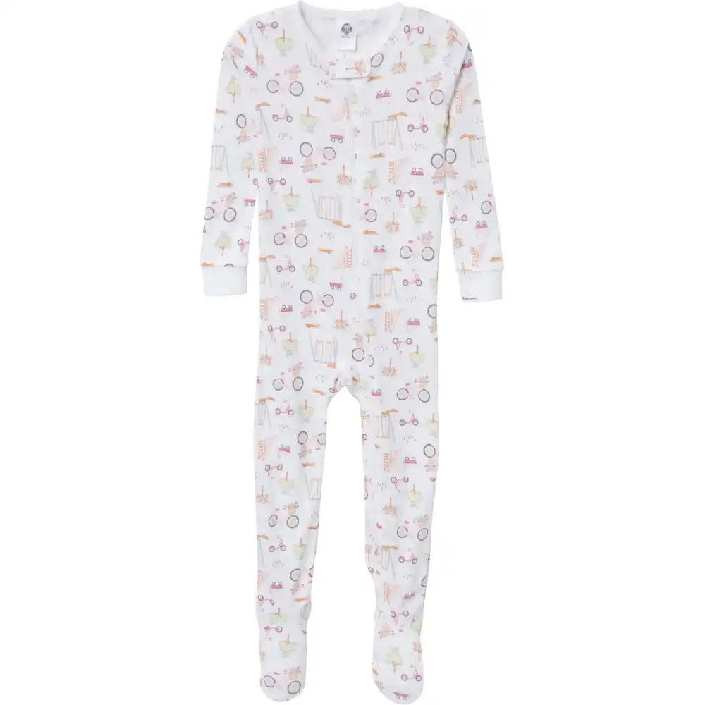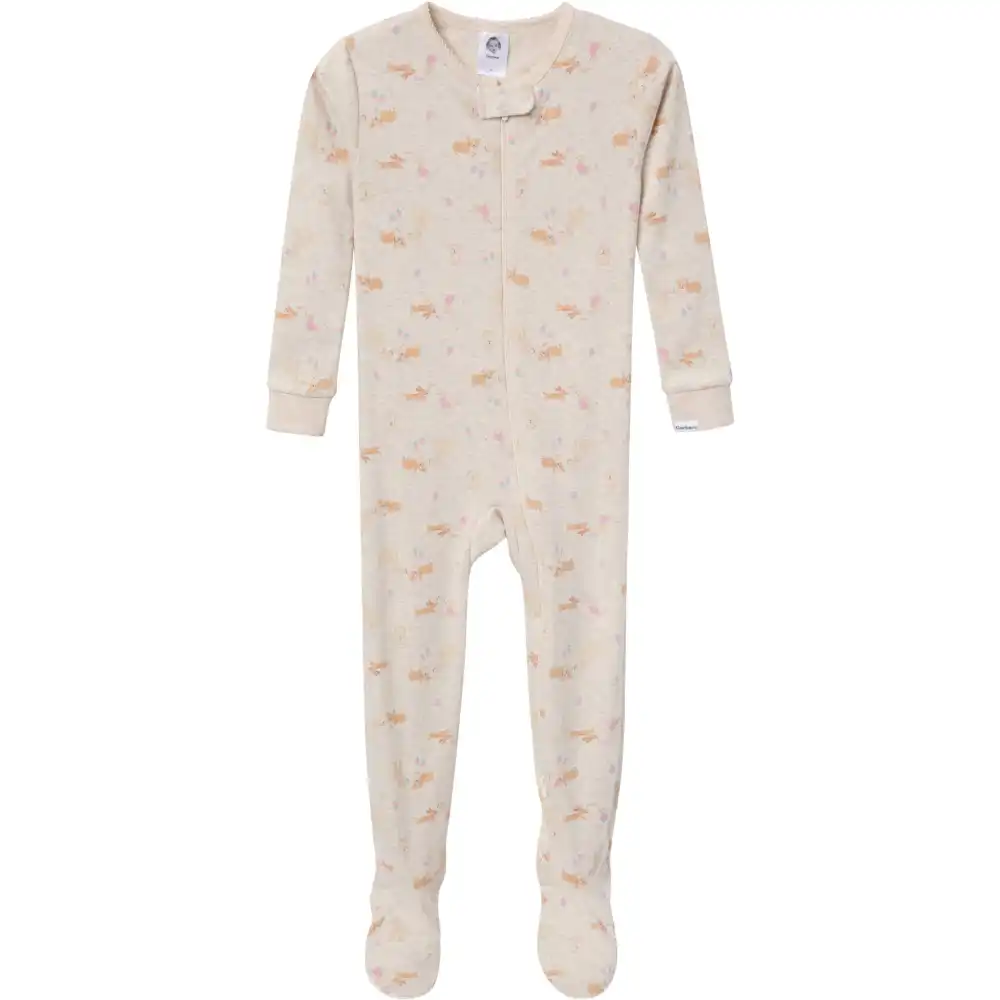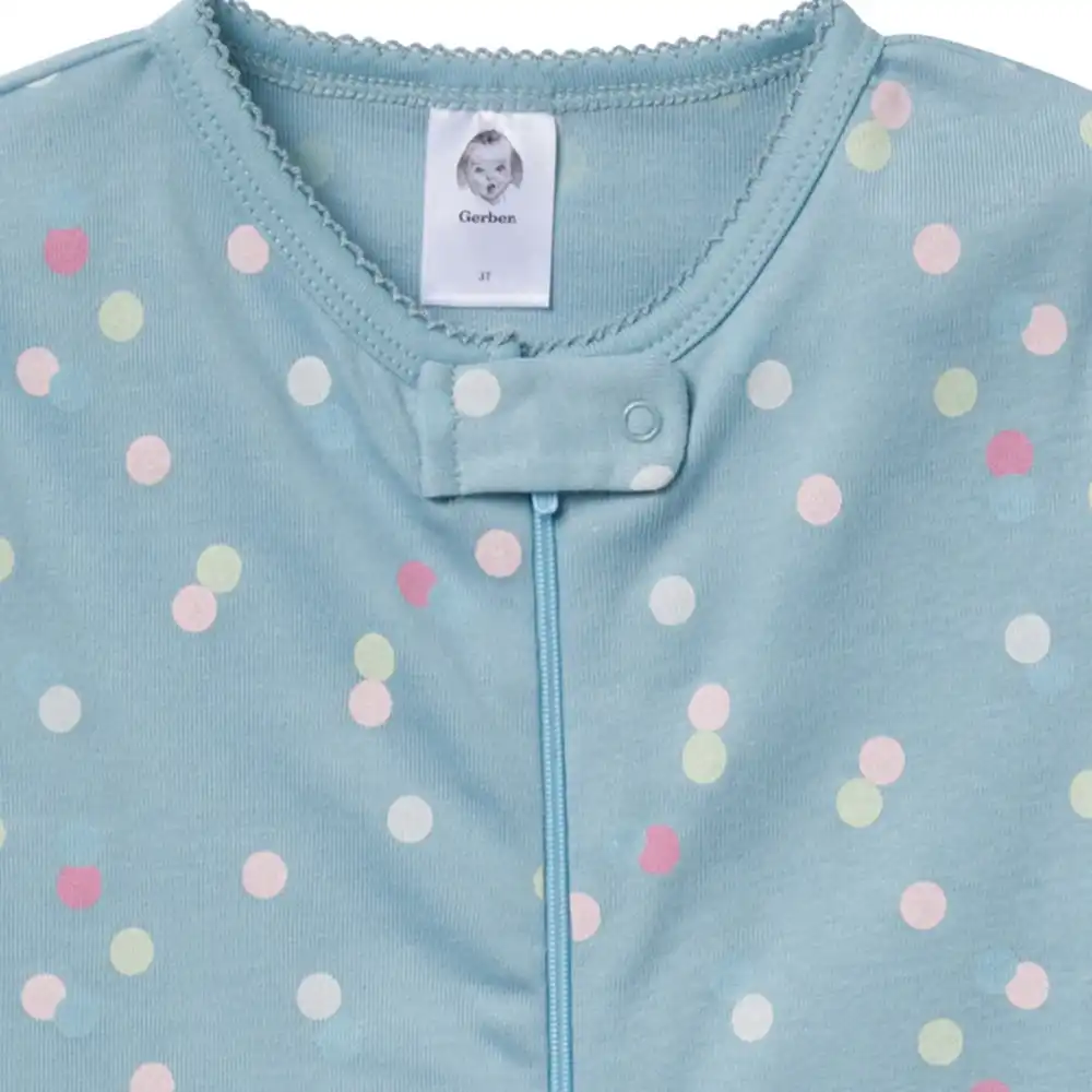 Perfect for colder months, this 4-pack of cozy baby girl or toddler girl pajamas keeps your little one cozy all season long. Made primarily from soft cotton, our pajamas offer a soft, breathable feel that keeps her cozy without overheating. The convenient two-way zipper with a neckline guard makes dressing and diaper changes simple, while the spandex trim at the neckline and wrists ensures a flexible, secure fit. Designed with a tight-fitting style for safe wear, these footed pajamas also feature non-skid soles to provide extra traction and support for those first steps. With adorable dog print themes, this multi-pack is not only a great way to stock up on essentials and also makes a thoughtful baby shower gift. Our essentials have been independently certified with STANDARD 100 by OEKO-TEX® so that you don’t have to worry about harmful substances in your baby’s wardrobe. Pack includes 4 snug-fitting footed pajamas.