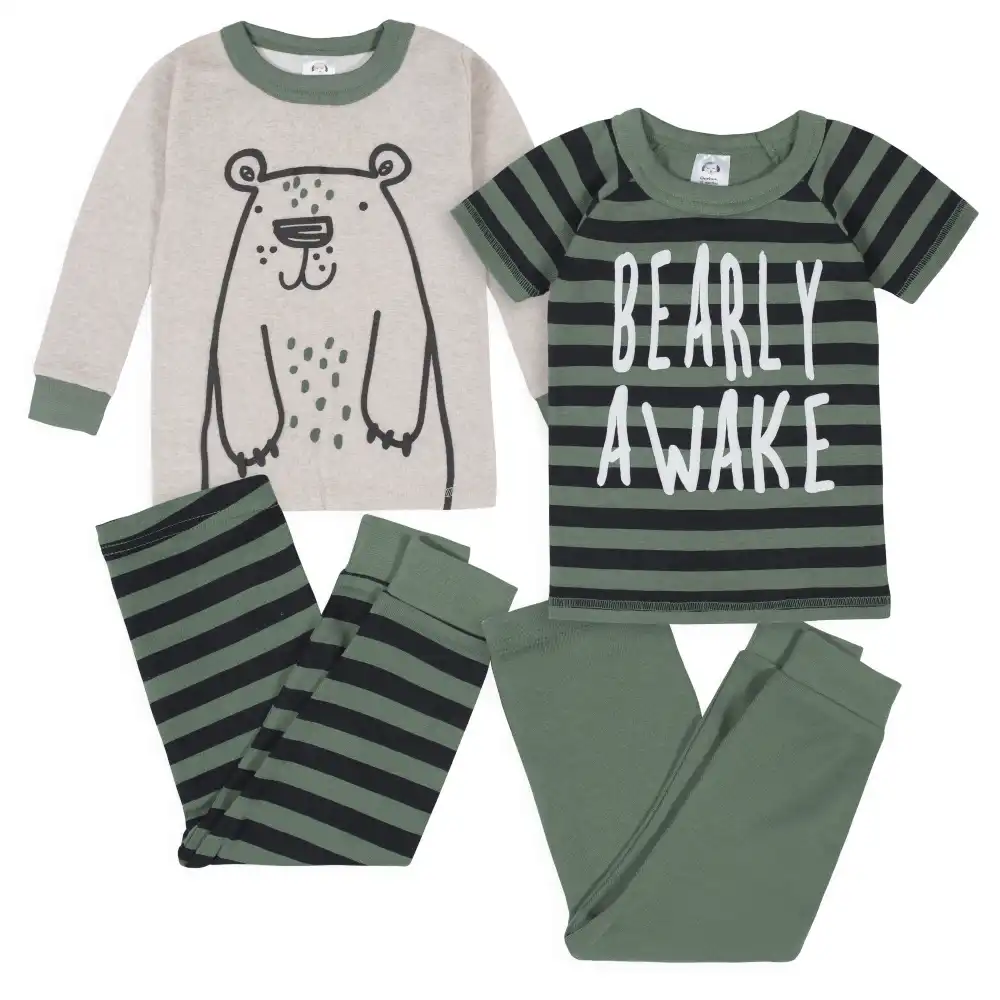 4-Piece Infant & Toddler Boys Bear Snug Fit Cotton Pajamas