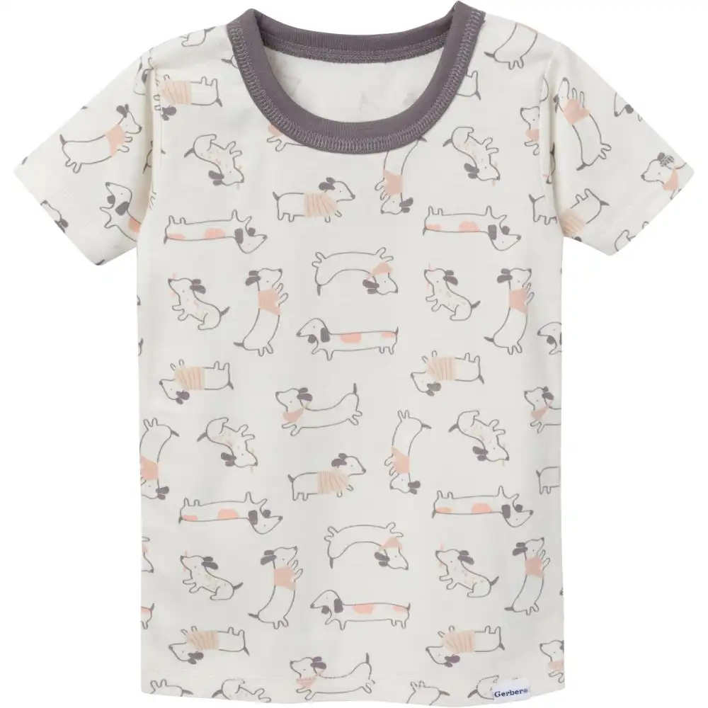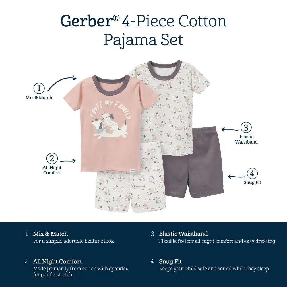 These delightful 2-piece pajama sets, featuring matching tops and shorts, are ideal for keeping your little one comfy and cool on warmer nights. Crafted primarily from soft cotton, they offer a gentle, breathable feel that ensures a good night's sleep. The comfort-stretch waistband provides a flexible fit, allowing your baby or toddler to move freely and stay comfy. Designed with a snug-fitting style for safety, these pajamas showcase charming dog-themed prints, making them both playful and practical for sweet dreams after a day of fun. Our essentials have been independently certified with STANDARD 100 by OEKO-TEX® so that you don’t have to worry about harmful substances in your baby’s wardrobe. Pack includes two pajamas tops with two matching bottoms.