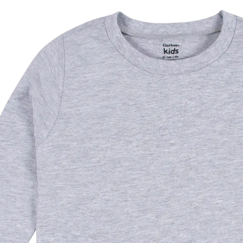 Long sleeve, grey t-shirts are an everyday staple of your little one's wardrobe. The soft cotton jersey fabric makes them lightweight and durable to wear, and spandex at the neck, wrists, and waist adds a gentle stretch to keep your little one comfortable. Neutral colors are easy to match to a wide variety of outfits, and it's simple to add layers when the weather turns cooler and you need to keep your little one cozy. Machine wash and dry for easy care. Our essentials have been independently certified with STANDARD 100 by OEKO-TEX® so that you don’t have to worry about harmful substances in your little one's wardrobe. This pack includes five t-shirts.