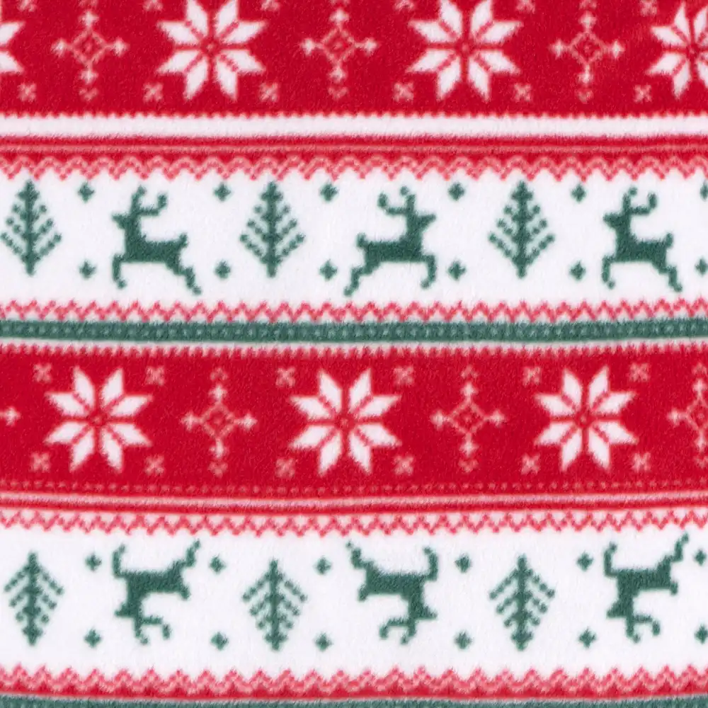 Get your baby or toddler ready for cozy winter nights with our soft microfleece footie pajamas, perfect for the holiday season! Designed with a festive red, white, and green fair isle pattern featuring adorable reindeer, trees, and snowflakes, these pajamas will add a touch of holiday cheer to bedtime. The two-way zipper with a neckline protector ensures easy dressing and diaper changes, while the rounded, ribbed neckline offers a flexible fit for comfort. Plus, the non-skid soles on sizes 9M-5T provide extra traction for those early mornings of play. Dress your toddler in warmth and festive fun with these holiday-perfect footie pajamas! Our essentials have been independently certified with STANDARD 100 by OEKO-TEX® so that you don’t have to worry about harmful substances in your little one's wardrobe. Pack includes one flame resistant blanket sleeper.