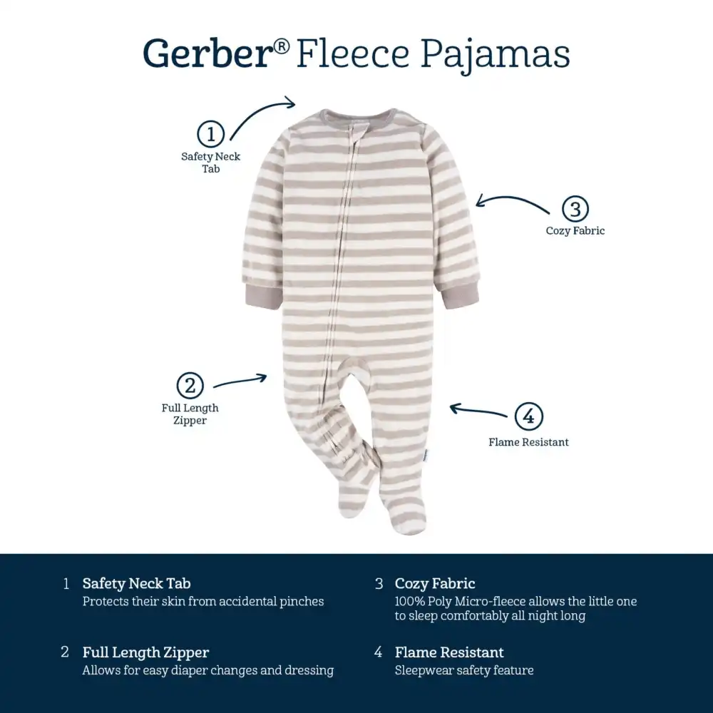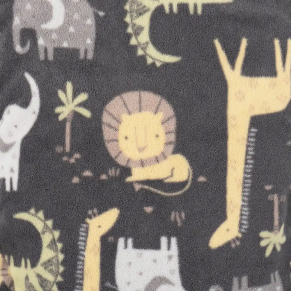 Spark your toddler's adventurous spirit with our cozy microfleece footie pajamas, perfect for cool winter nights! These soft pajamas feature a playful design of multi-color safari animals, making bedtime an exciting adventure. Crafted for all-night comfort, they include a two-way zipper with a neckline protector for easy dressing and diaper changes. The rounded, ribbed neckline ensures a flexible and comfy fit, while the non-skid soles on sizes 9M-5T provide added traction for little explorers. Our essentials have been independently certified with STANDARD 100 by OEKO-TEX® so that you don’t have to worry about harmful substances in your baby’s wardrobe. Pack includes one flame resistant blanket sleeper.