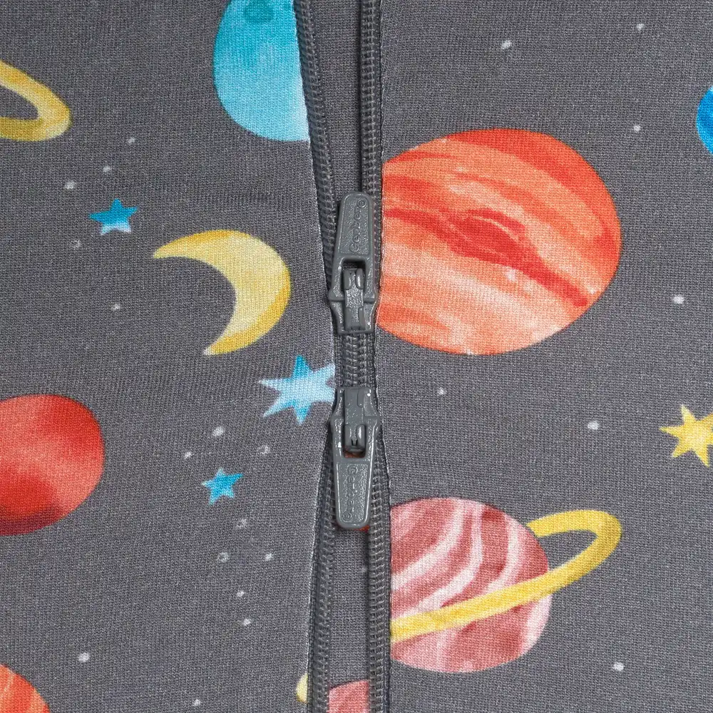 Designed for every season, our buttery soft collection of affordable rompers, sleepwear, Dresses and headbands will be their new wardrobe favs! We've partnered with Livaeco™ by Birla Cellulose to bring you and your little ones a more sustainably produced, environmentally-friendly viscose fiber collection made predominately from eucalyptus blended with spandex. This extremely soft outer space print footed pajama is super comfy and designed for long wear. Features a double zipper to make changes super easy. High-quality, lightweight, breathable, durable fabric with the perfect amount of stretch for active babies and toddlers. Prints and solids made for sibling matching. A bedtime favorite for sure. Gerber® quality, comfort, safety and value never goes out of style!