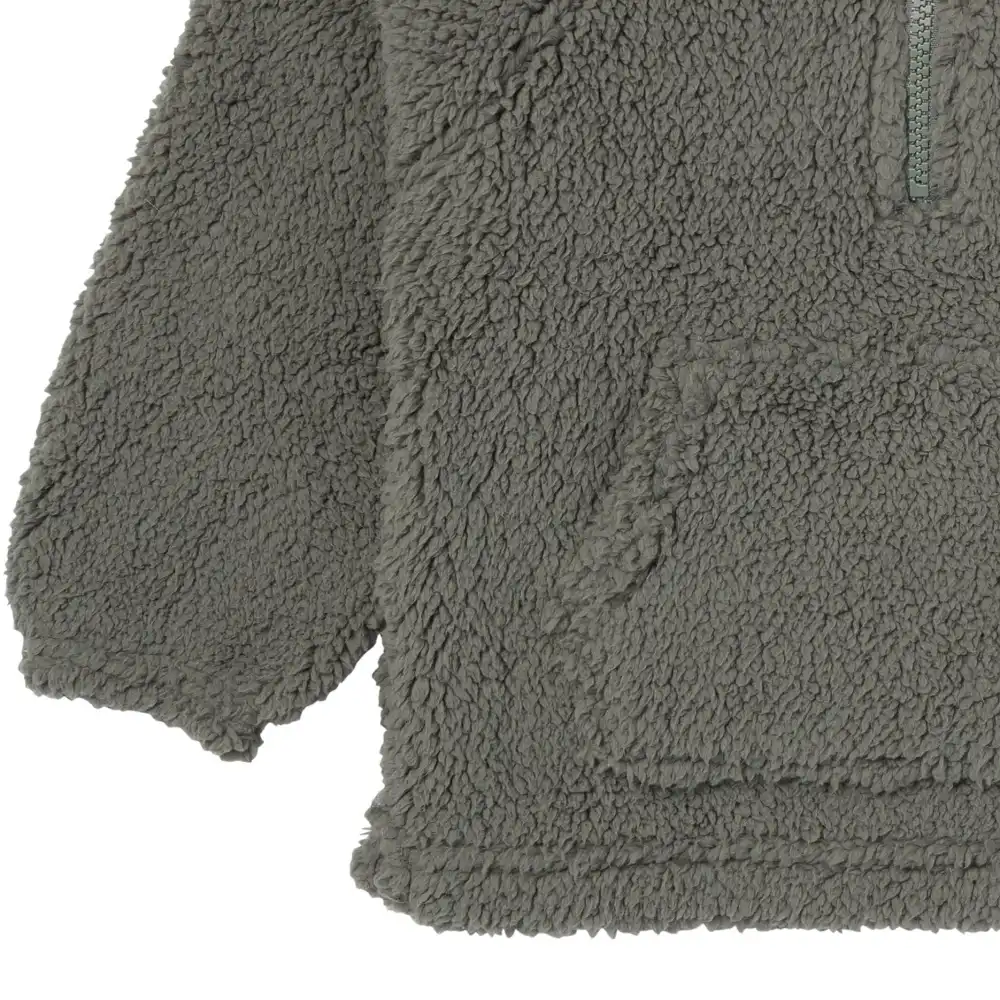 Our infant or toddler half-zip pullover is the perfect blend of comfort and style for your little one! Made from sherpa fleece, this pullover offers a very soft feel against your child's skin, ensuring they stay cozy and comfortable all day long. The high collar provides extra warmth on cooler days, while elastic sleeve cuffs offer a flexible fit for active toddlers. Easy to layer over outfits, this pullover is a versatile addition to your child's wardrobe, perfect for outdoor adventures or cozy indoor play. Complete with a kangaroo pouch pocket for storing treasures or keeping little hands warm, they’ll love wearing this all season long. Our essentials have been independently certified with STANDARD 100 by OEKO-TEX® so that you don’t have to worry about harmful substances in your little one’s wardrobe. Pack includes a half-zip pullover.