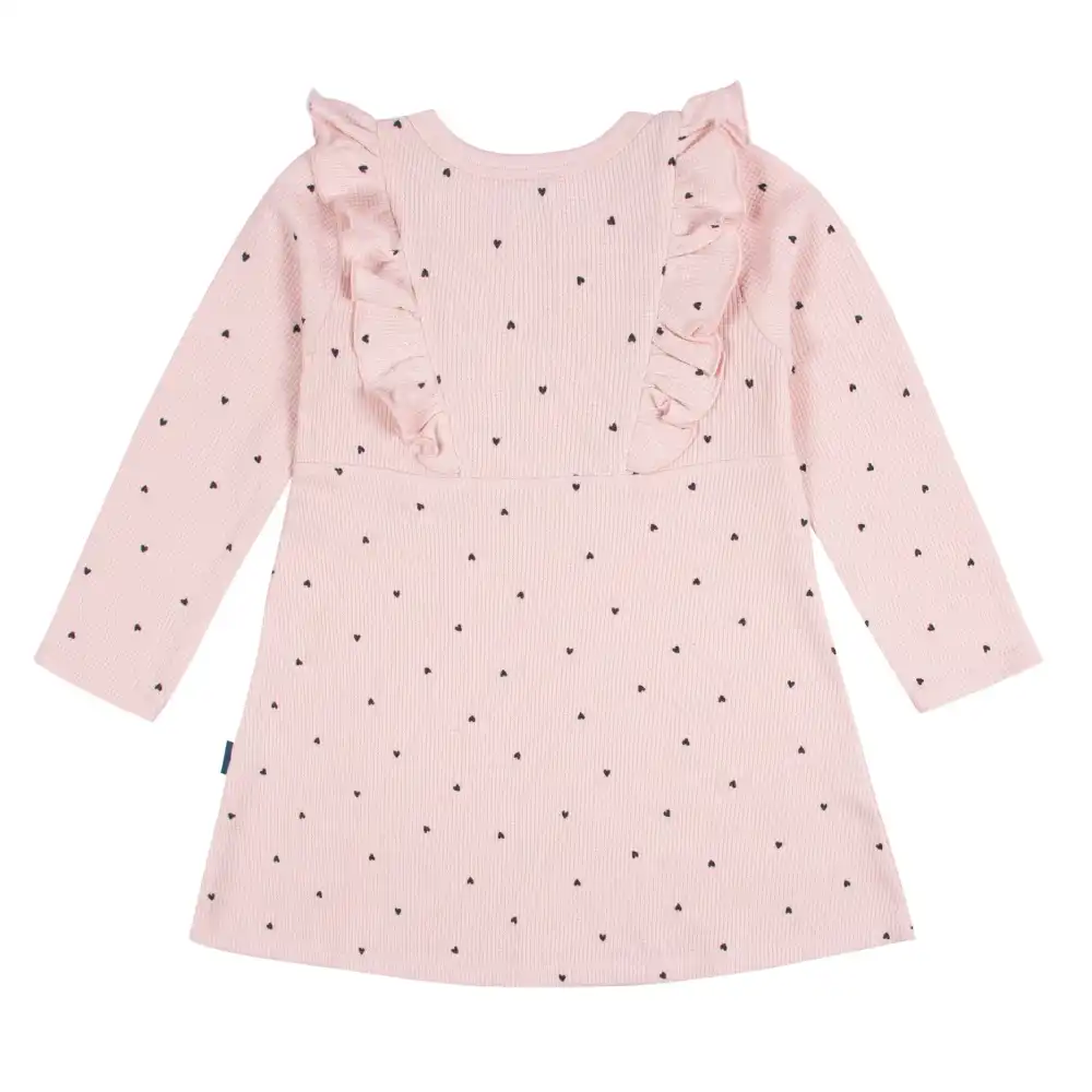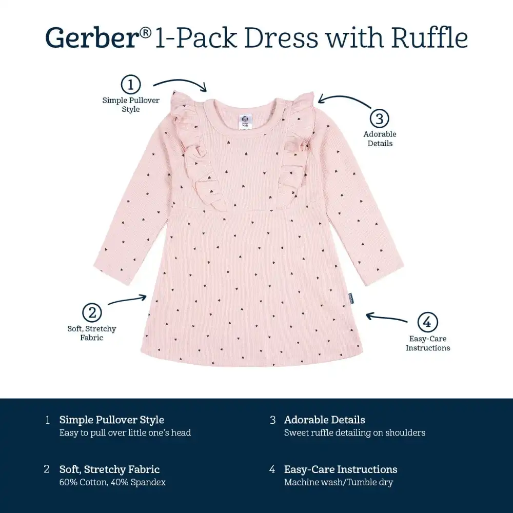 This light pink dress is a stunning choice for your little girl's wardrobe, with a stylish ruffle design on the shoulders that adds an elegant touch. Made from a soft and comfortable blend of cotton and polyester, it features long sleeves to keep her comfortable. Your little one will love wearing it all the time thanks to its simple pullover style, which makes getting dressed a breeze. Plus, caring for this dress is effortless with machine washing and drying. Our essentials have been independently certified with STANDARD 100 by OEKO-TEX® so that you don’t have to worry about harmful substances in your baby’s wardrobe. This pack includes one dress.