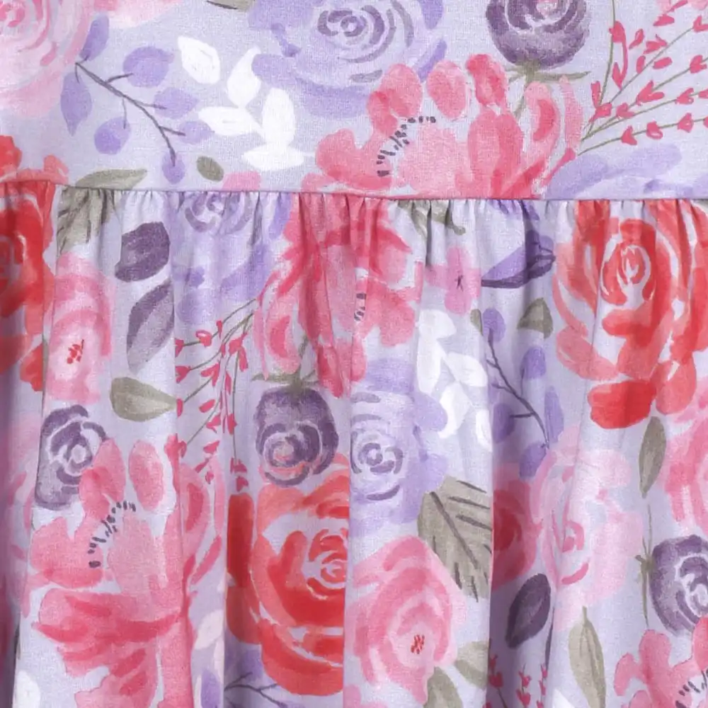 Designed for every season, our buttery soft collection of affordable rompers, sleepwear, Dresses and headbands will be their new wardrobe faves! We've partnered with Livaeco™ by Birla Cellulose to bring you and your little ones a more sustainably produced, environmentally-friendly viscose fiber collection made predominately from eucalyptus blended with spandex. This extremely soft lilac floral print Dress is made for twirling. The perfect look for any occasion. High-quality, lightweight, breathable, durable fabric with the perfect amount of stretch for active babies and toddlers. Prints and solids made for sibling matching. This short sleeve twirl Dress is comfy fitting for all day wear. Gerber® quality, comfort, safety and value never goes out of style!