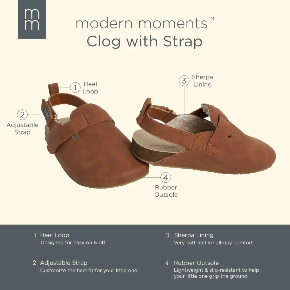 Dress your little one in comfort and style with our adorable baby or toddler clog with strap. Crafted with a soft interior sherpa lining, these clogs provide cozy warmth and comfort for tiny feet. The durable rubber sole offers reliable traction and support, ensuring stability with every step. With a simple strap design, these clogs are easy to put on and take off, making them perfect for busy mornings and quick trips outside. Plus, the heel loop adds an extra layer of convenience, making it easy to remove the shoes when needed. Whether it's playtime or a busy day of errands, these clogs are sure to become a favorite in your child's wardrobe. Pack includes one pair of clog shoes.
