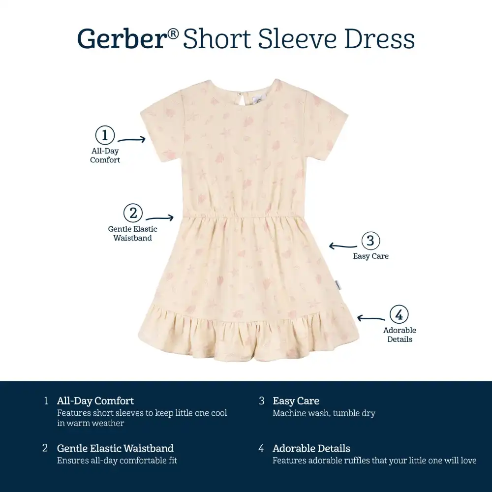 It's time to embrace those sunny days once more, and our adorable toddler dress is here to celebrate them! Crafted from 100% cotton slub jersey, this dress features an elasticized waistband for an all-day comfy fit making it the right fit for any adventure. The easy pull-on style is secured with a rear neckline button, ensuring hassle-free dressing. Plus, you can easily keep this cotton toddler dress clean with machine washing, so it's always ready for another wear. Our essentials have been independently certified with STANDARD 100 by OEKO-TEX® so that you don’t have to worry about harmful substances in your toddler's wardrobe. Includes one dress.