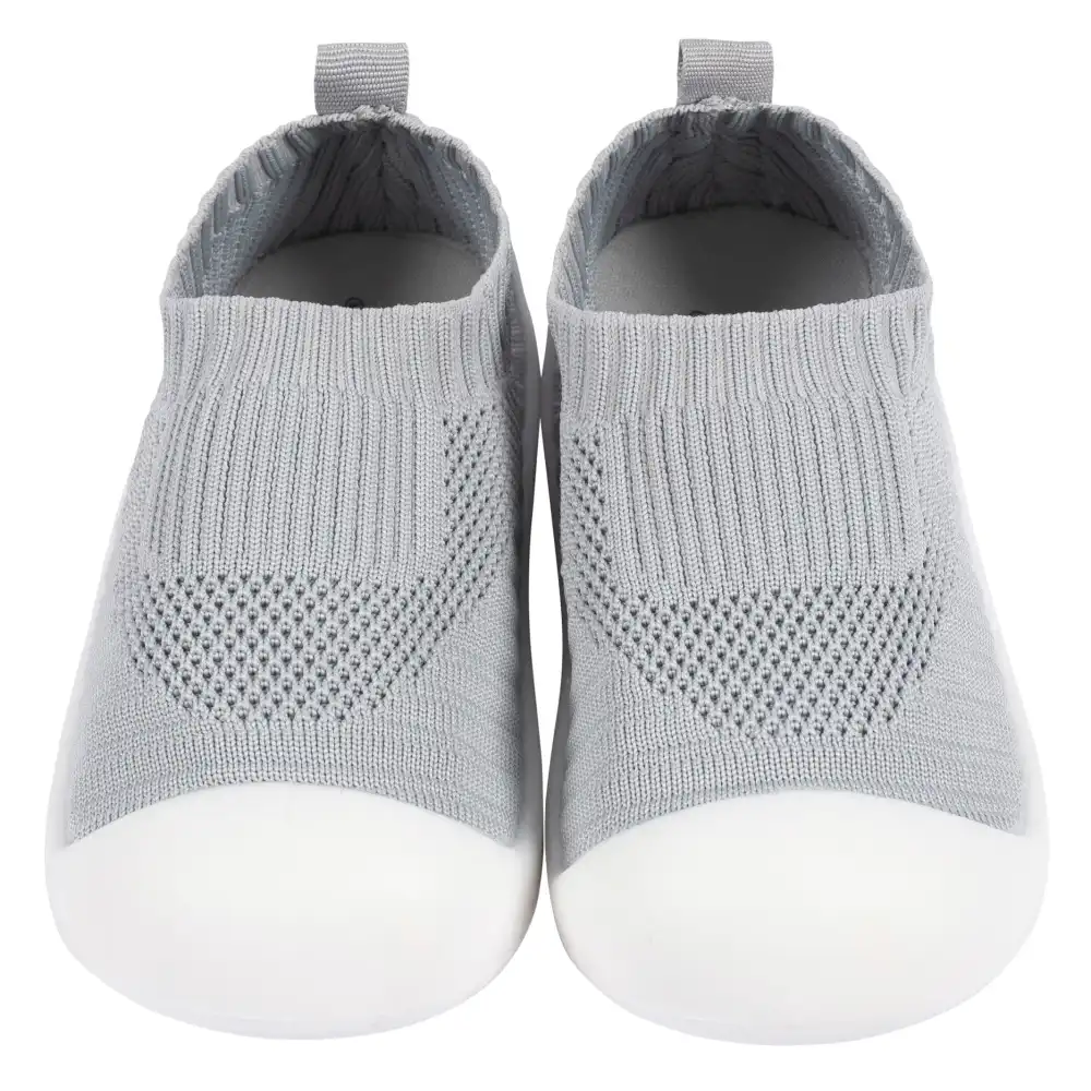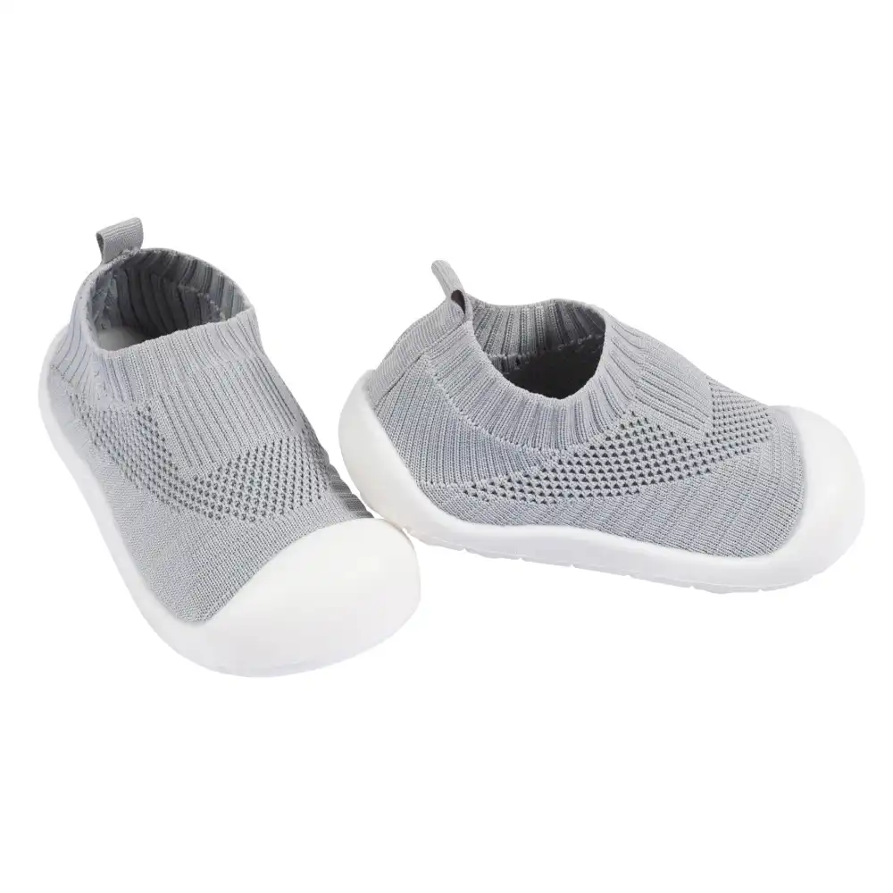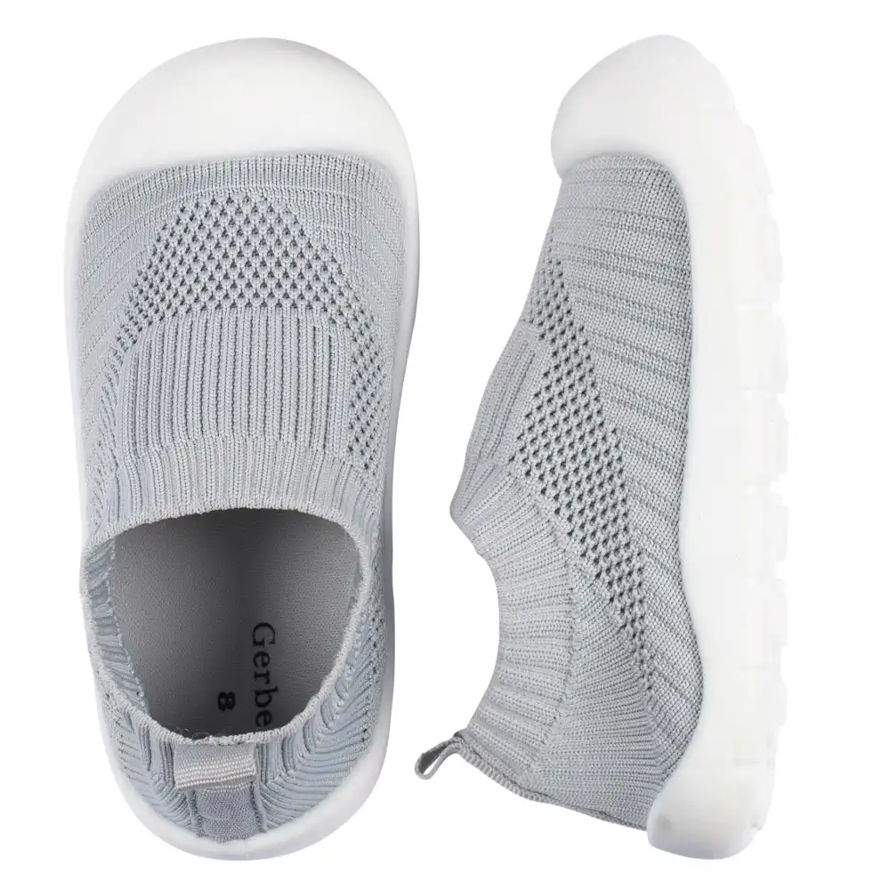 With a stretchy knit top and durable rubber sole, this shoe provides all day comfort and protection for your toddler boy. Slips on easily to make getting dressed a hassle-free. Pack includes one pair of gray slip-on shoes.