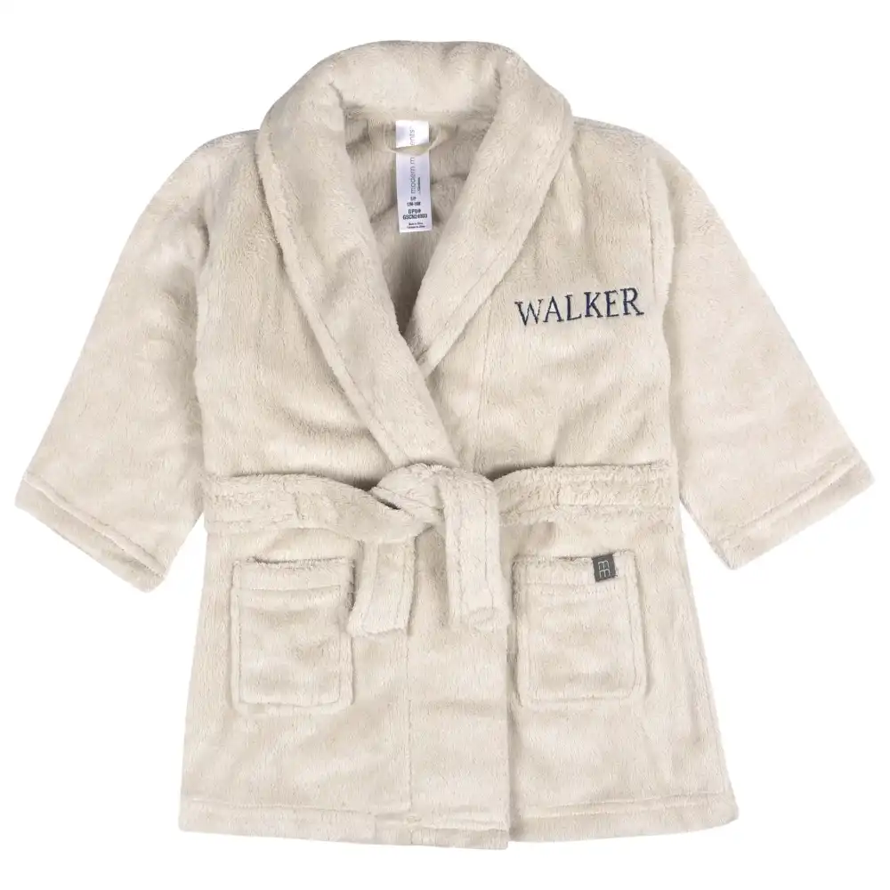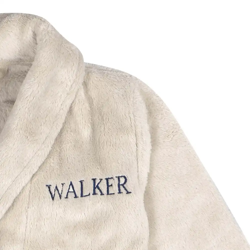 Embroidered Infant & Toddler Neutral Light Beige Shawl Collar Robe