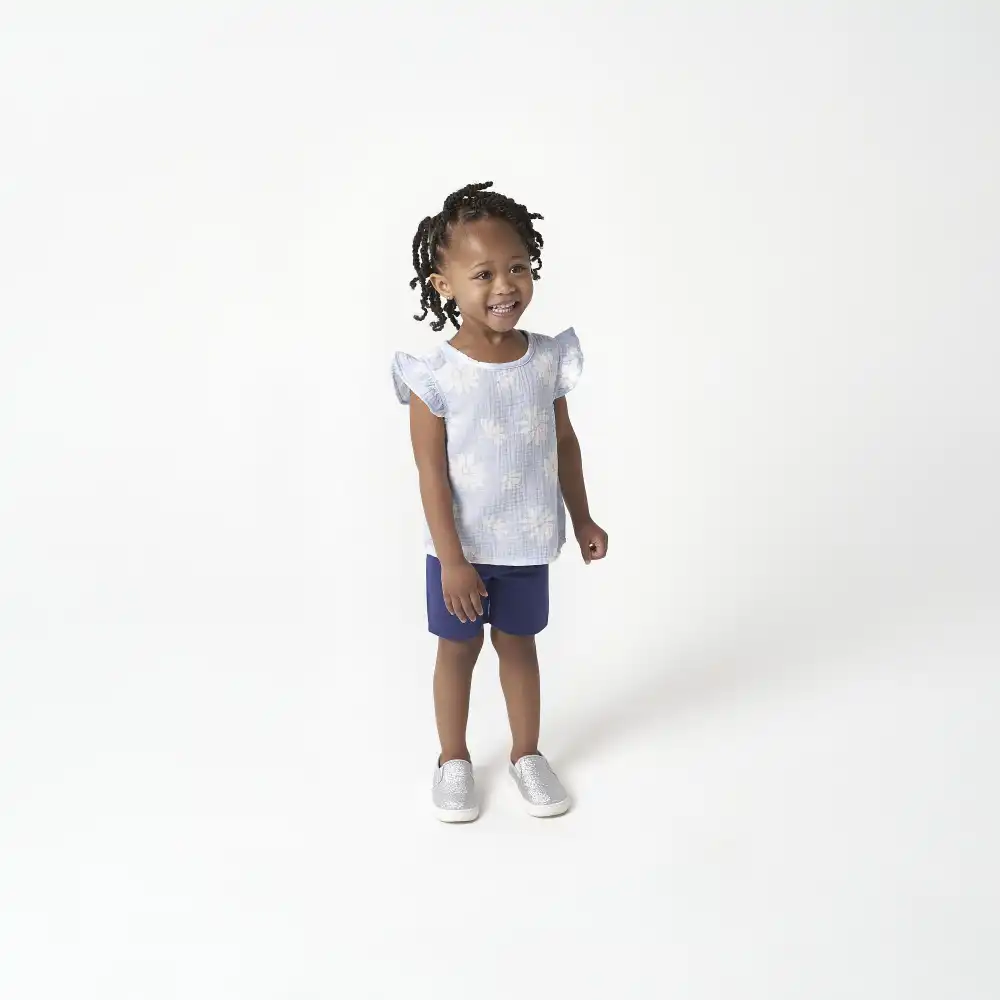 2-Pack Infant Girls Blue Floral Pull-On Shorts
