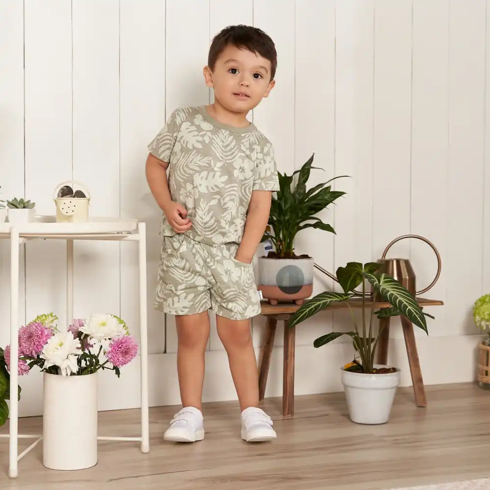 2-Piece Baby and Toddler Boys Tropical Leaves T-Shirt and Shorts Set