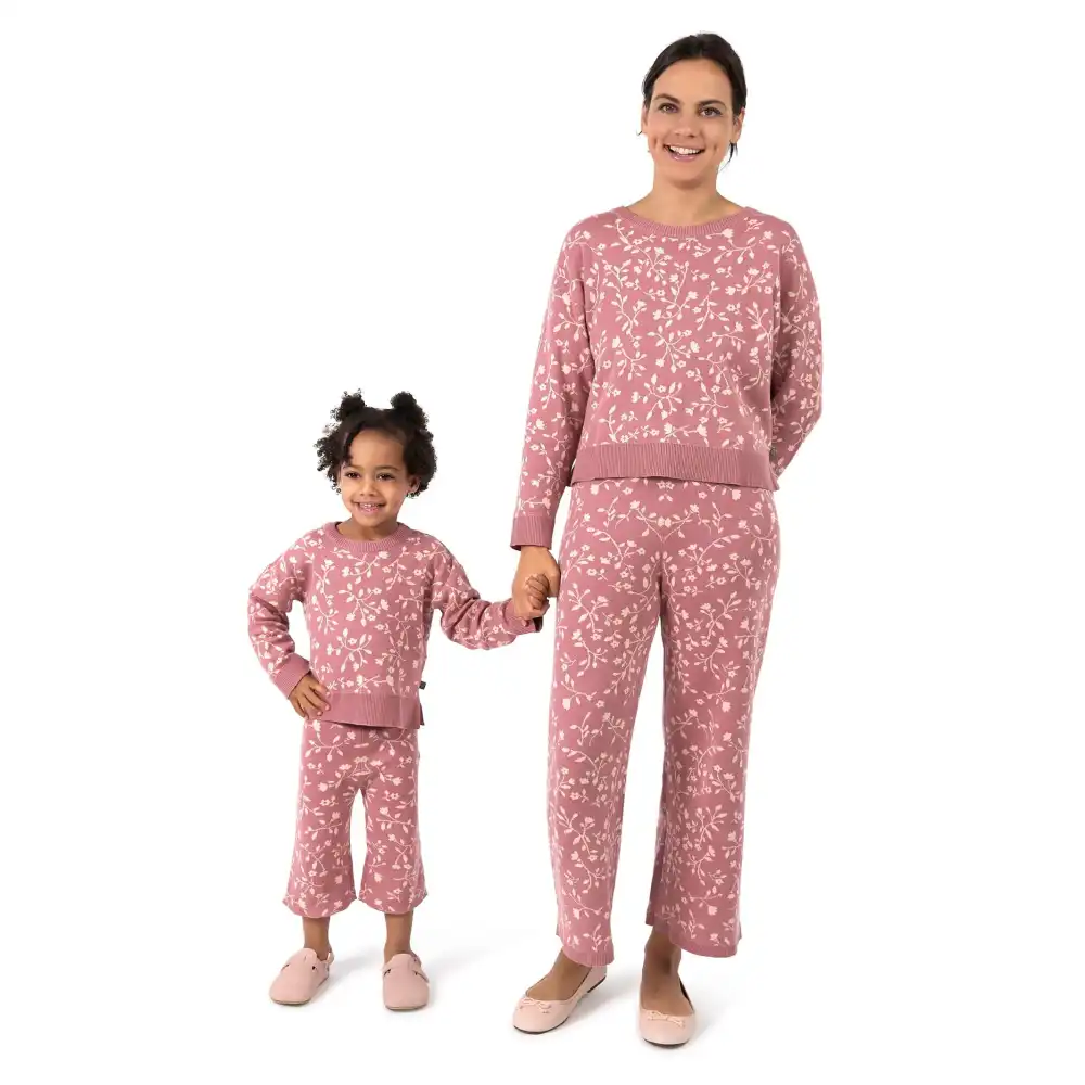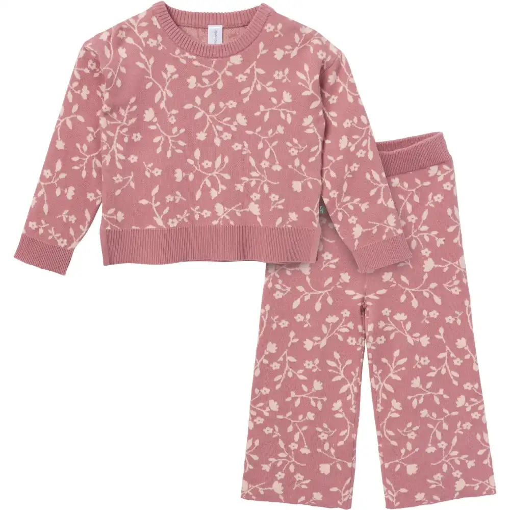 2-Piece Infant & Toddler Girls Dark Rose Branches Jacquard Sweater Set