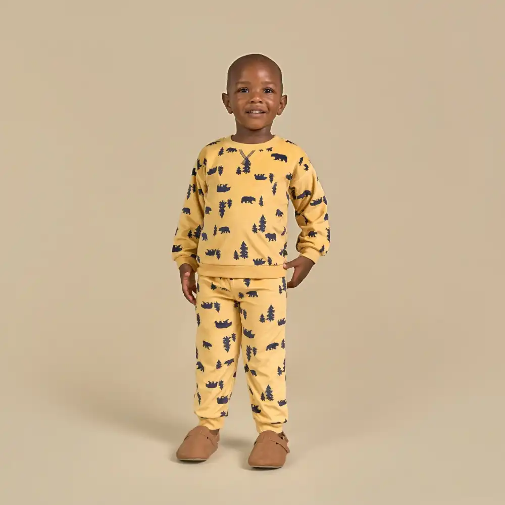 2-Piece Infant & Toddler Boys Yellow Forest Fleece Pajama Set