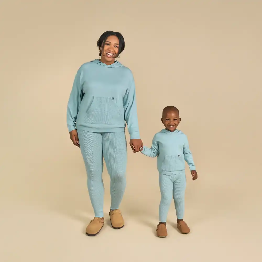 2-Piece Infant & Toddler Medium Sky Hooded Waffle Top and Legging Set