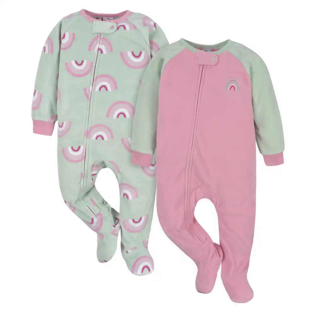 2-Pack Toddler Girls Green Rainbow Fleece Pajamas