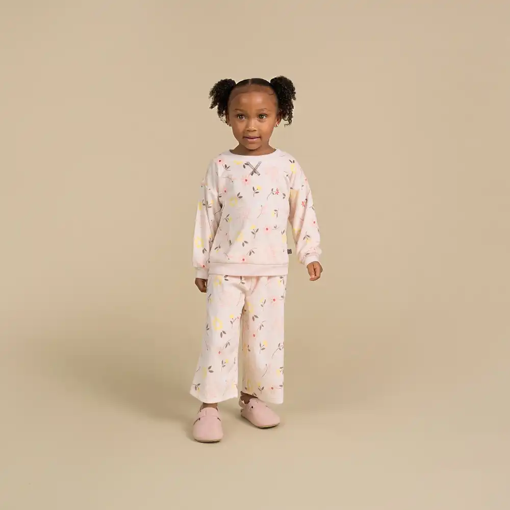 2-Piece Infant & Toddler Girls Light Pink Falling Flower Fleece Pajama Set