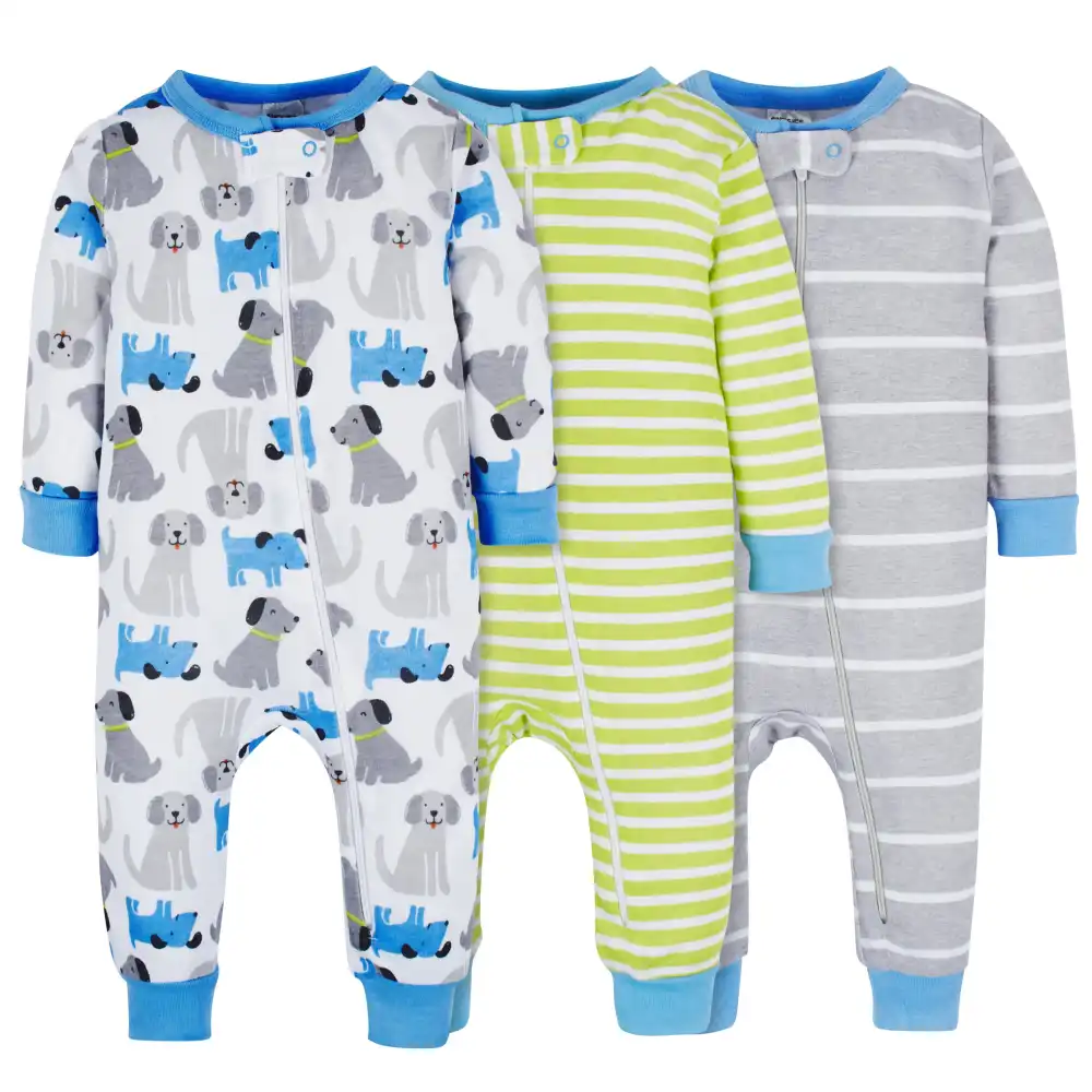 3-Pack Baby & Toddler Boys Stripes & Doggies Snug Fit Footless Pajamas