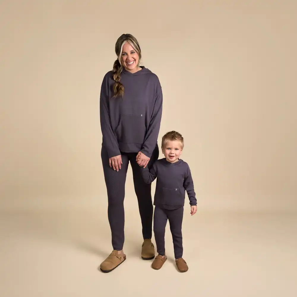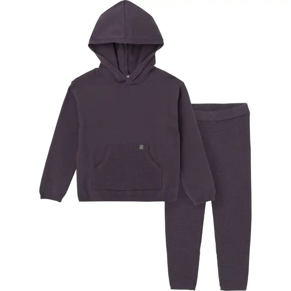 2-Piece Infant & Toddler Dark Grey Hooded Waffle Top and Legging Set