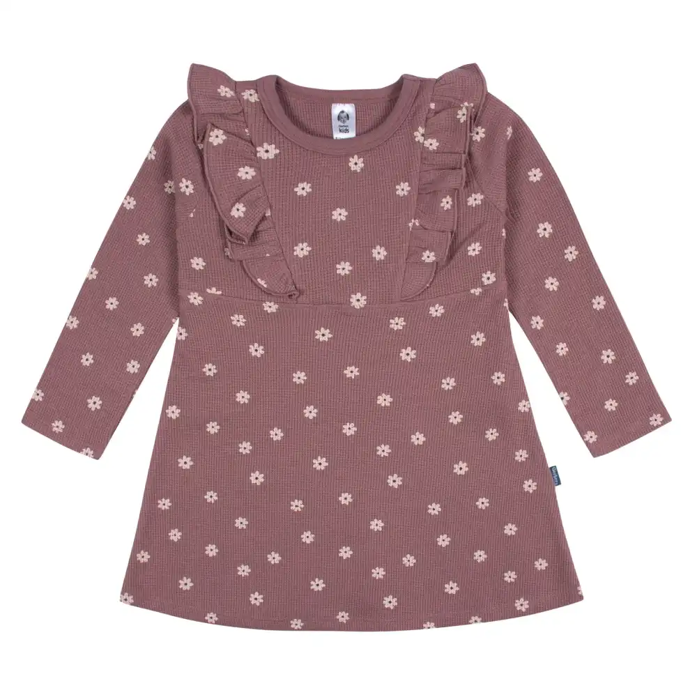 Infant and Toddler Girls Pink Daisies Dress with Ruffle