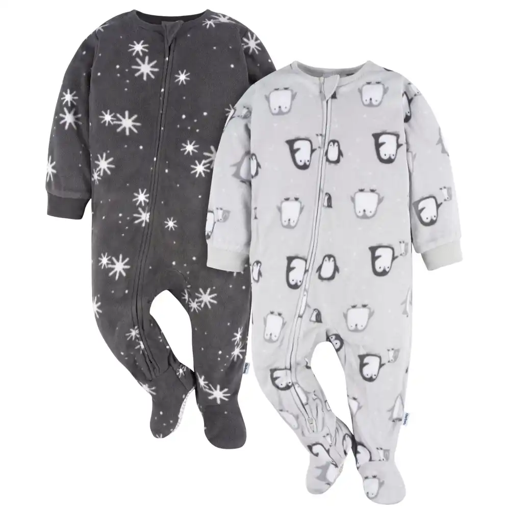 2-Pack Baby & Toddler Neutral Grey Penguins Fleece Pajamas